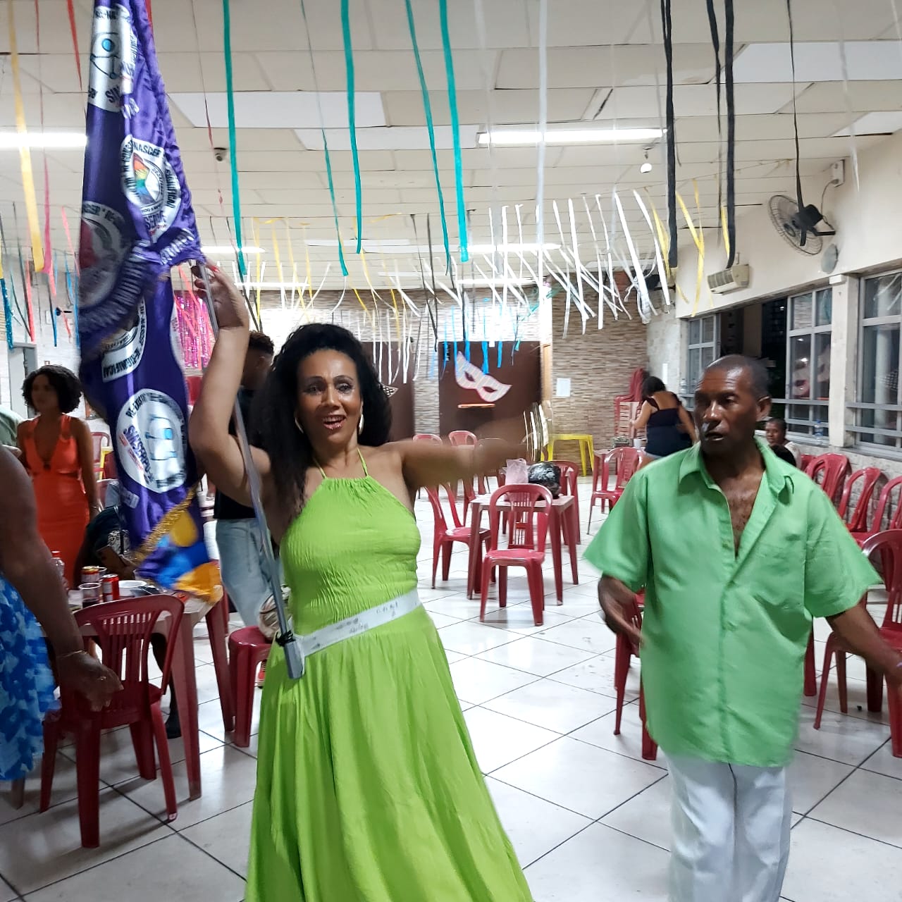 “Chamei a Bete e o Sambista (Aloísio) para entregar a bandeira porque eles são servidores. Eles vão ‘puxar’ o Bloco, o casal oficial de mestre-sala e porta-bandeira. A Lucilea (vice-presidente do SINSERPU-JF) entregou oficialmente a outra bandeira a Bia Costa, funcionária da AMAC. Ela vai ‘puxar’ os foliões do Bloco, no dia 21. Então teremos duas porta-bandeiras e dois mestres-salas”, explicou Deise Medeiros.