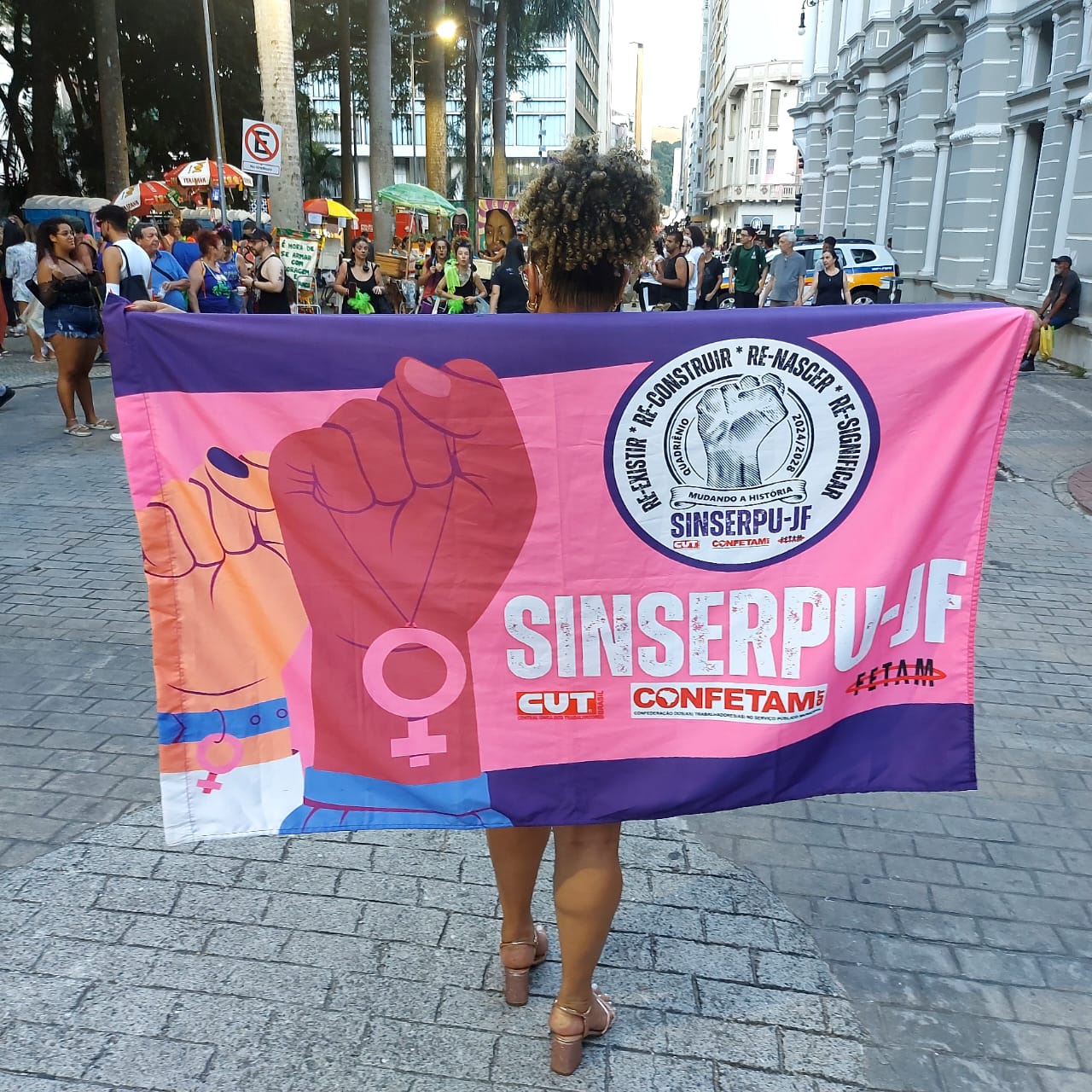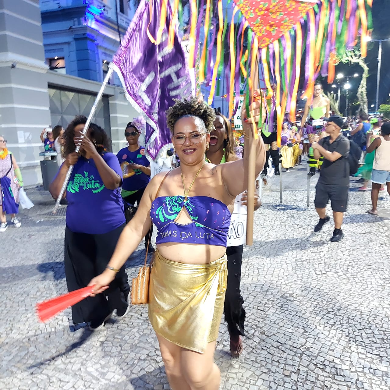 Para além da folia, o SINSERPU-JF apoia as lutas do 8M Juiz de Fora e se faz representar no coletivo justamente com Lucilea Pereira.