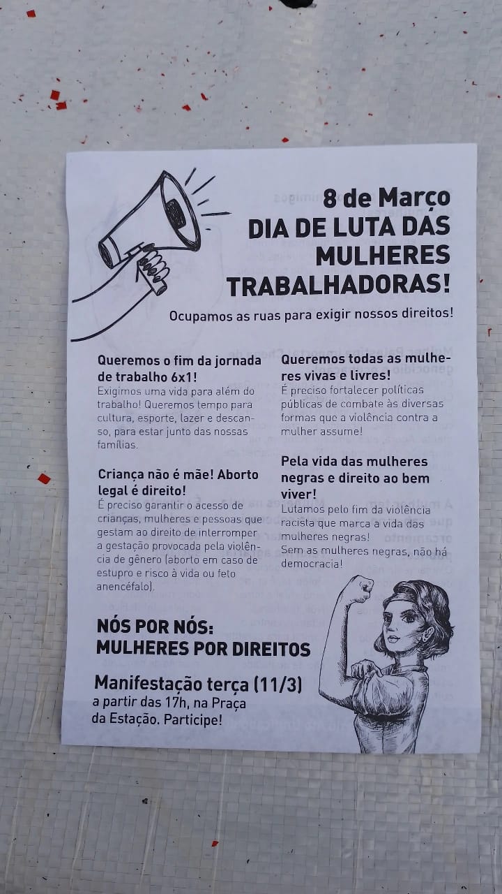 Lucilea Pereira descreveu muito bem o evento: “Entre um gole de café e uma conversa sincera, discutimos as dificuldades enfrentadas no dia a dia, a sobrecarga das múltiplas jornadas e a violência do patriarcado, que ainda oprime tantas de nós. Além da panfletagem, o momento também contou com falas potentes sobre a luta pelos direitos das mulheres, o fim da escala 6×1 e a triste realidade do feminicídio e da violência doméstica no Brasil”.