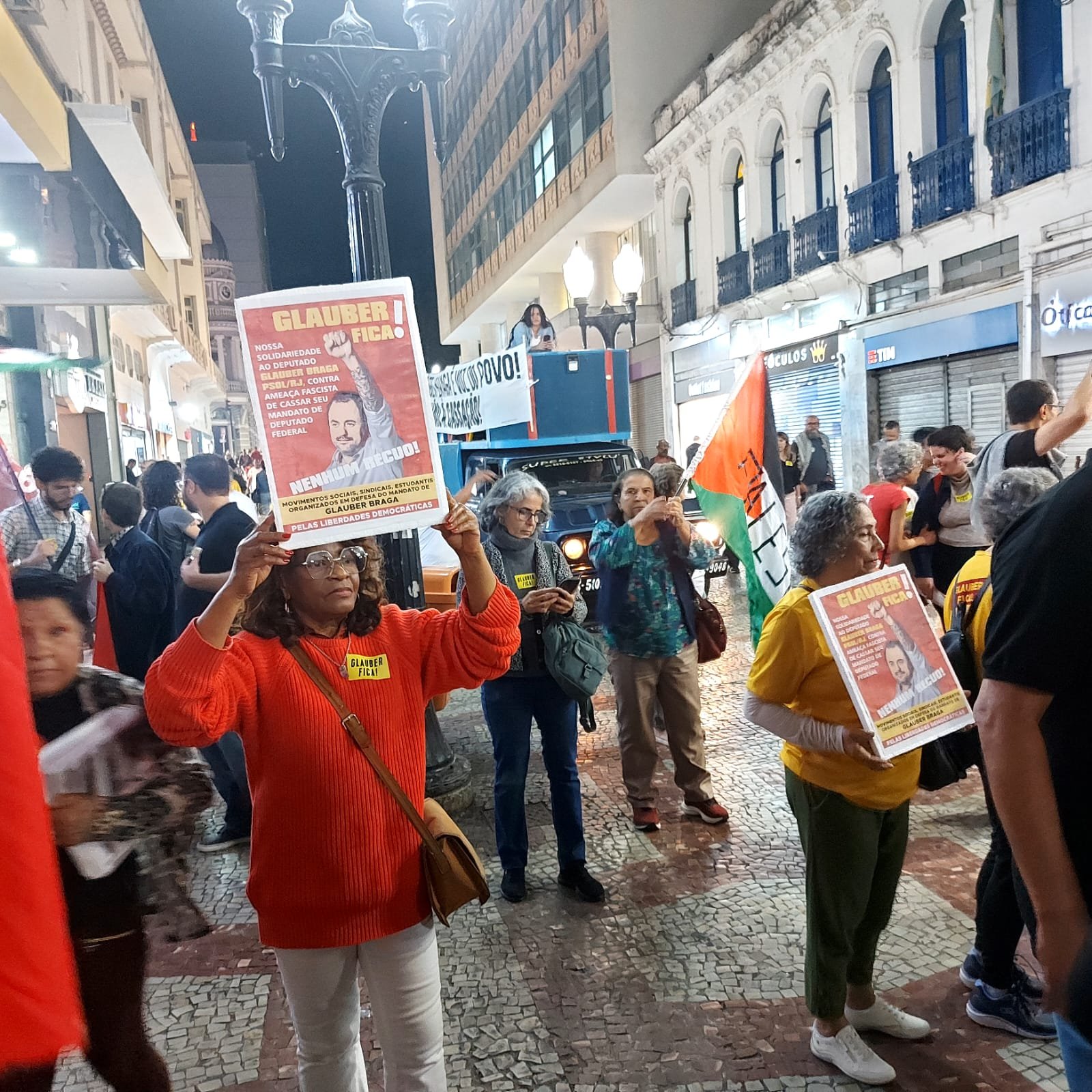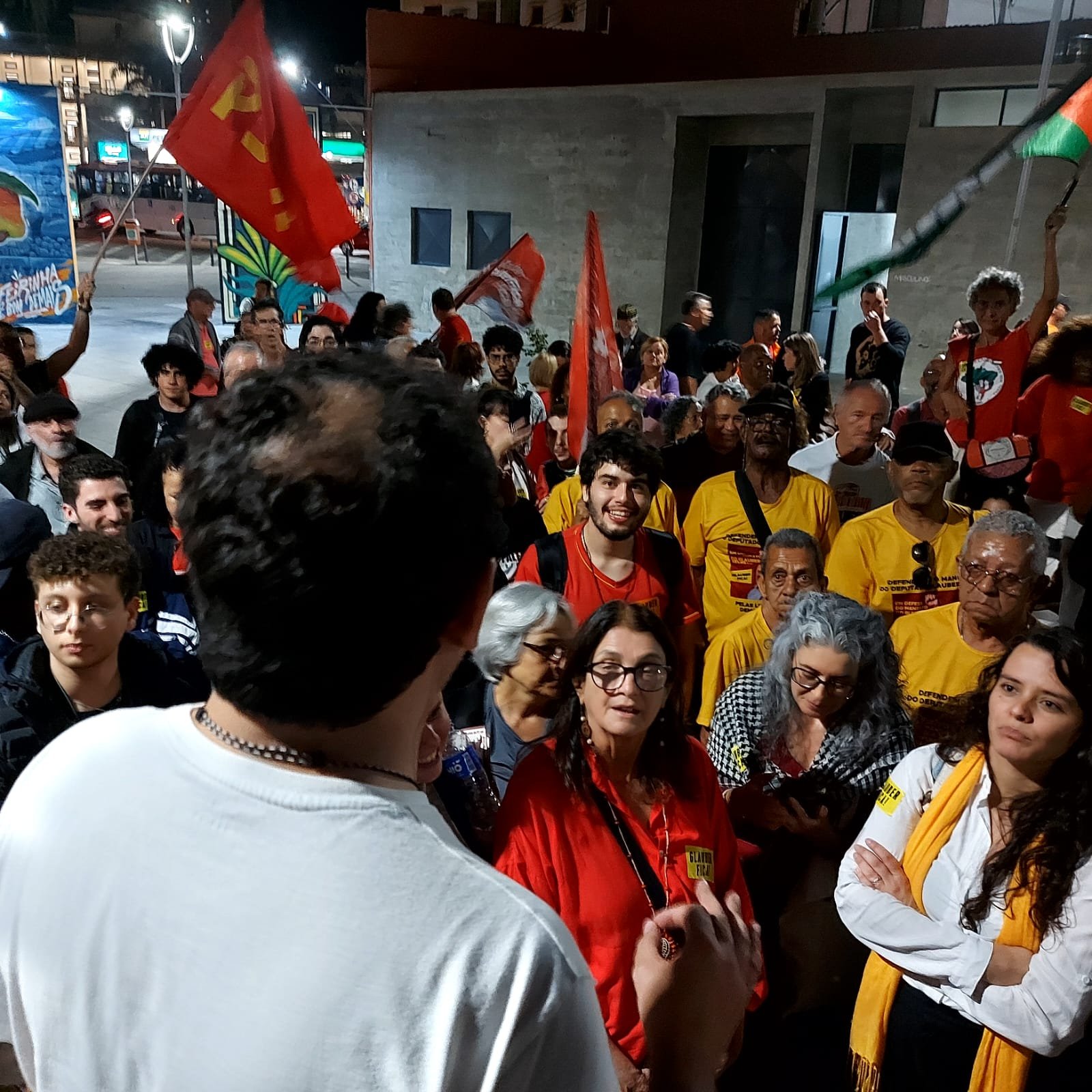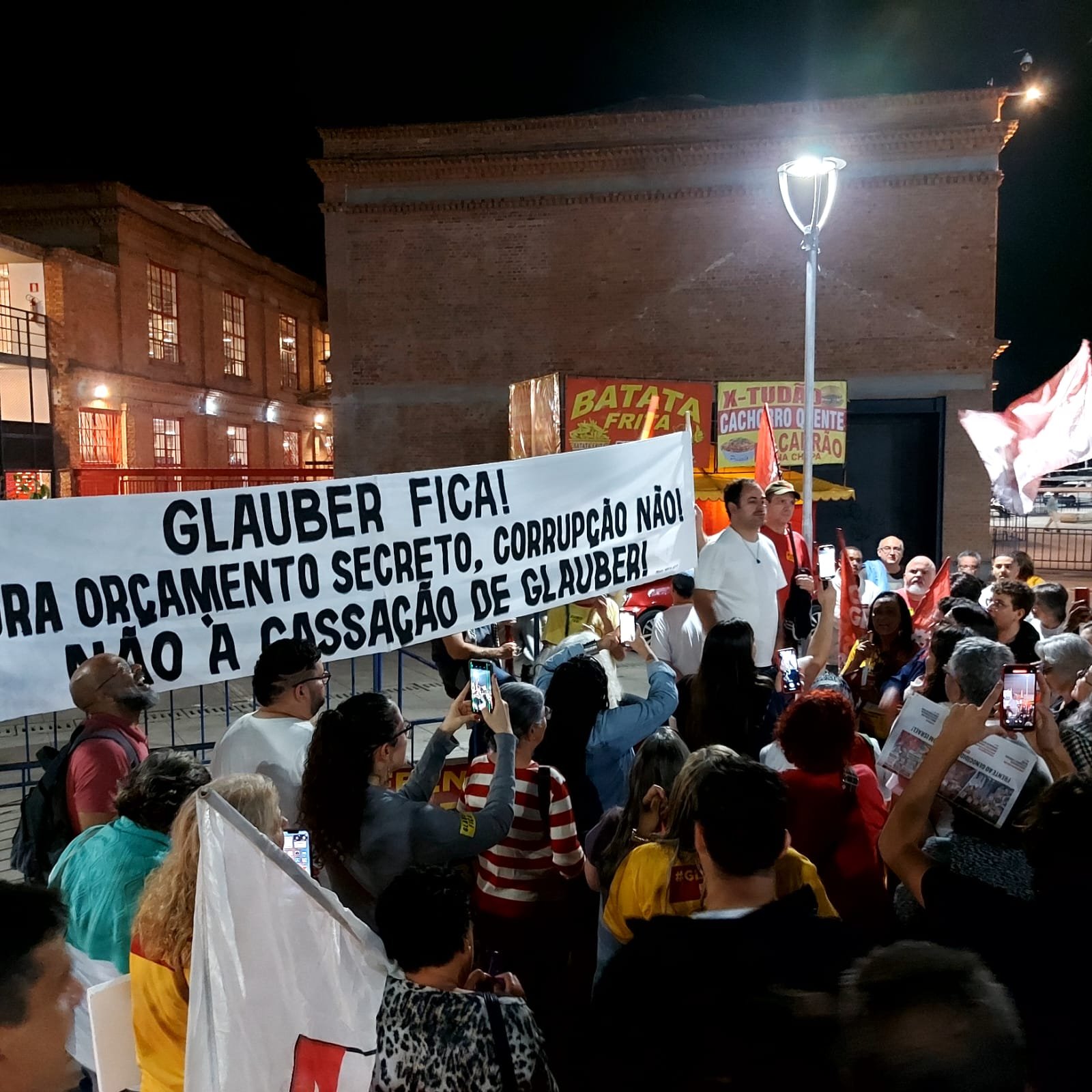 Toda essa “aura de certeza coletiva” se confirmou então ao cair da noite, surpreendentemente quente para o inverno, quando Glauber Braga começou a discursar: “a perseguição a mim é porque tento impedir a captura do orçamento público pela extrema direita e pelo Centrão; é porque quero impedir que o gasto de R$ 50 bilhões em emendas seja secreto; é porque afirmo e reafirmo que toda emenda parlamentar, que destina dinheiro público, precisa ter autoria – senão é mutreta; é porque sabem que a minha permanência no Congresso representa a continuidade da luta pelas liberdades democráticas e contra os poderes oligárquicos”.