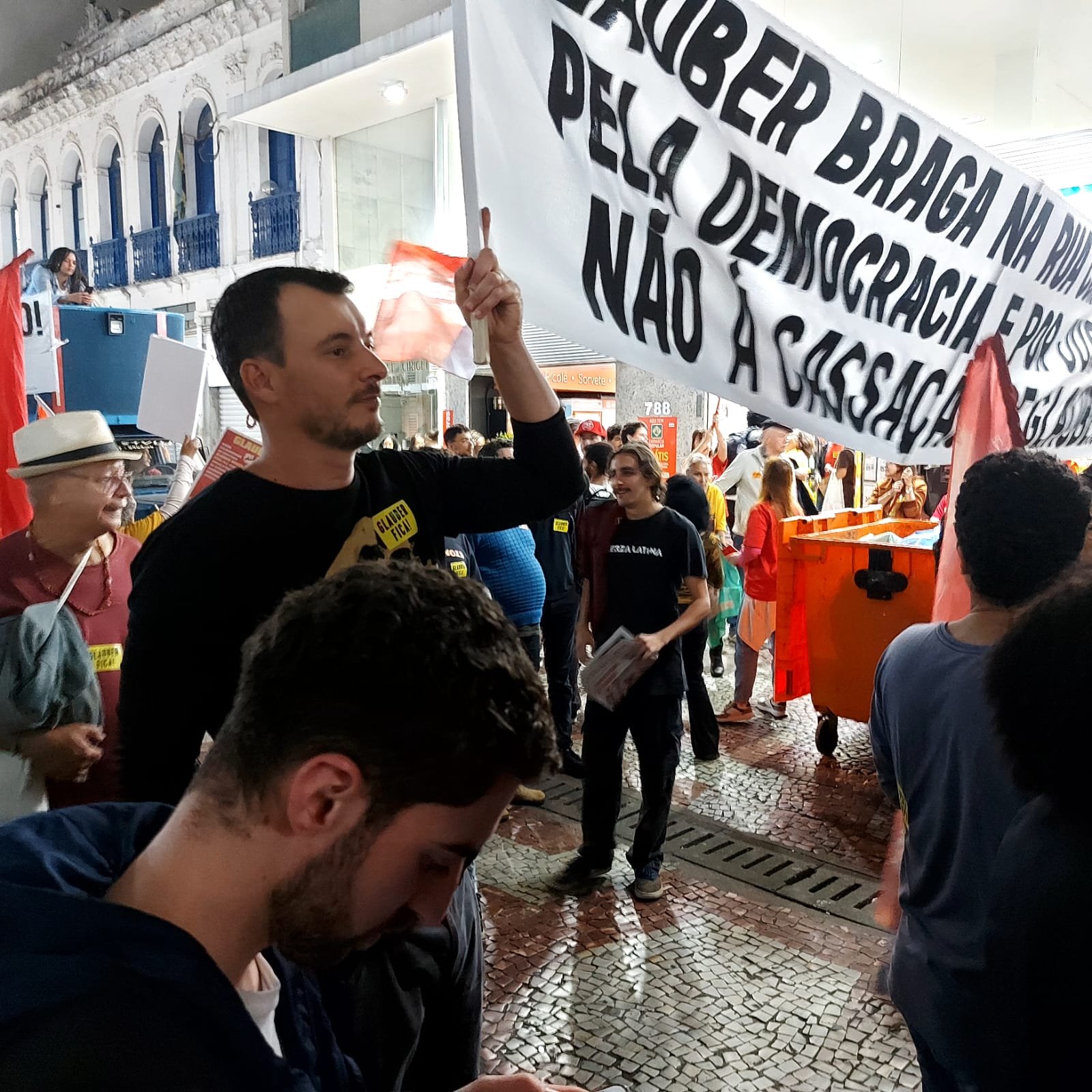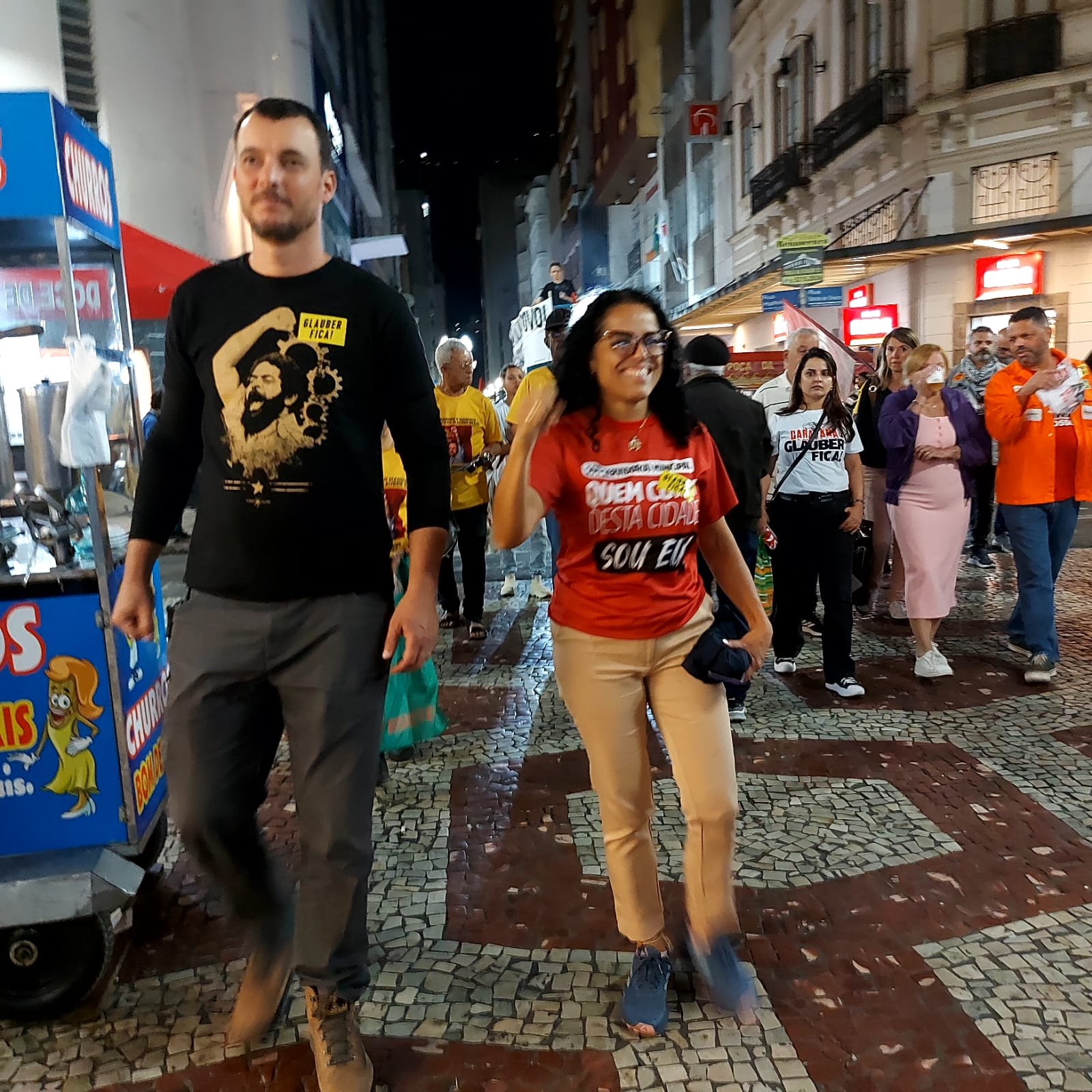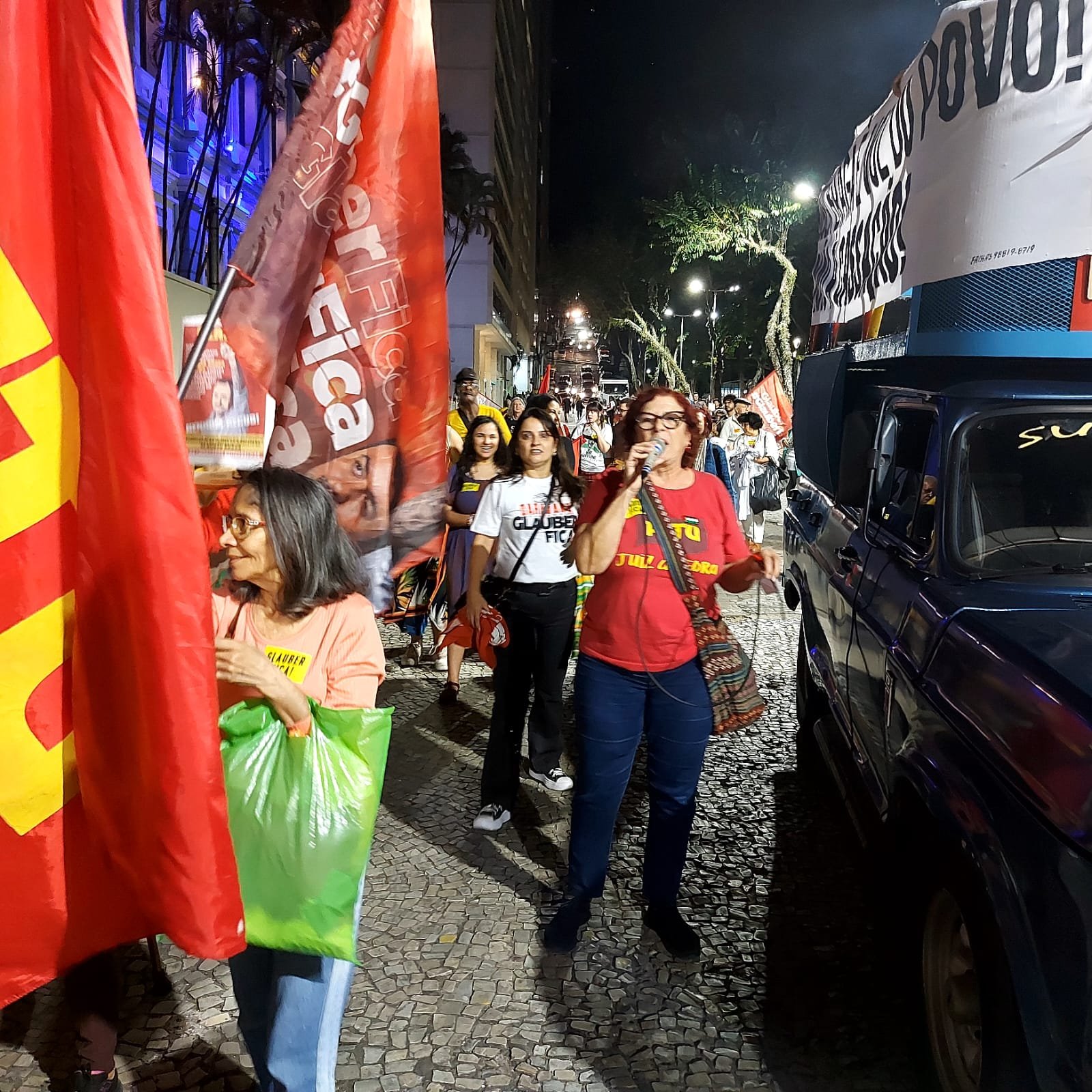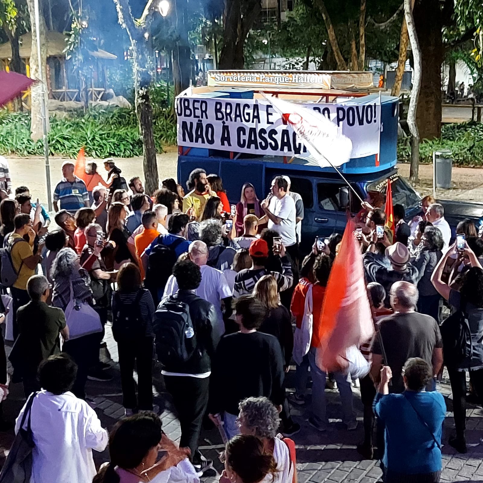 Toda essa “aura de certeza coletiva” se confirmou então ao cair da noite, surpreendentemente quente para o inverno, quando Glauber Braga começou a discursar: “a perseguição a mim é porque tento impedir a captura do orçamento público pela extrema direita e pelo Centrão; é porque quero impedir que o gasto de R$ 50 bilhões em emendas seja secreto; é porque afirmo e reafirmo que toda emenda parlamentar, que destina dinheiro público, precisa ter autoria – senão é mutreta; é porque sabem que a minha permanência no Congresso representa a continuidade da luta pelas liberdades democráticas e contra os poderes oligárquicos”.