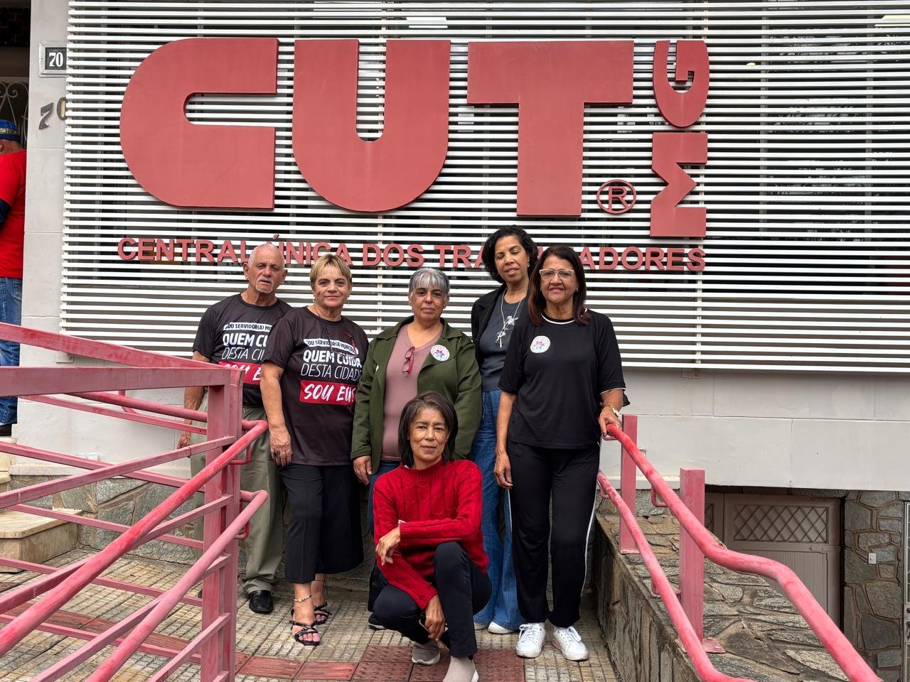A presidenta do SINSERPU-JF, Deise Medeiros, acompanhada do vice-presidente Weber Wagner e dos diretores Anderson Gonçalves [...]