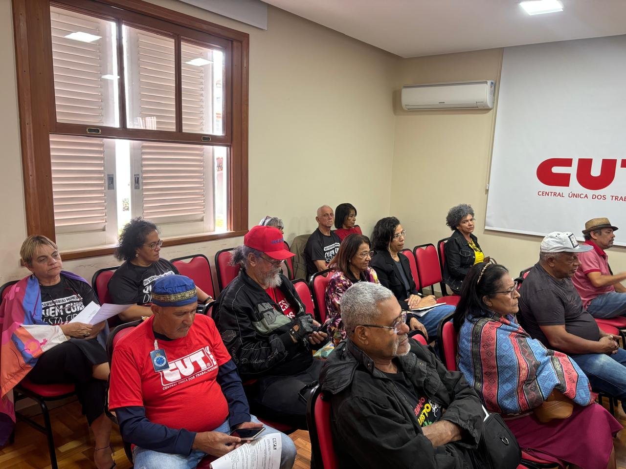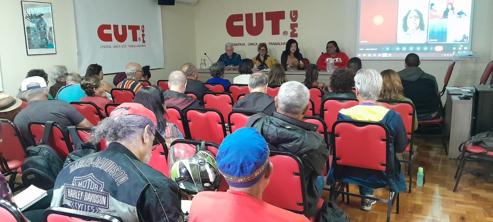 Os diretores do SINSERPU-JF Tânia Maria de Assis (Formação Sindical) e Claudio Dias (Base), os conselheiros fiscais do Sindicato Vera Lúcia Daniel e Wanor Alves Vieira, as parceiras Cristina Lopes e Cleonice Vaz Ribeiro (presidente e secretária da AMETA/Associação dos Servidores de Juiz de Fora) e as aposentadas da Saúde e integrantes da Comissão do Núcleo dos Aposentados do SINSERPU-JF Adelaide Silvana de Paula e Sandra Luiza Batista de Castro participaram, nesta sexta-feira (11 de julho), em Belo Horizonte, da Plenária dos/das Aposentados/as da CUT/ Minas.