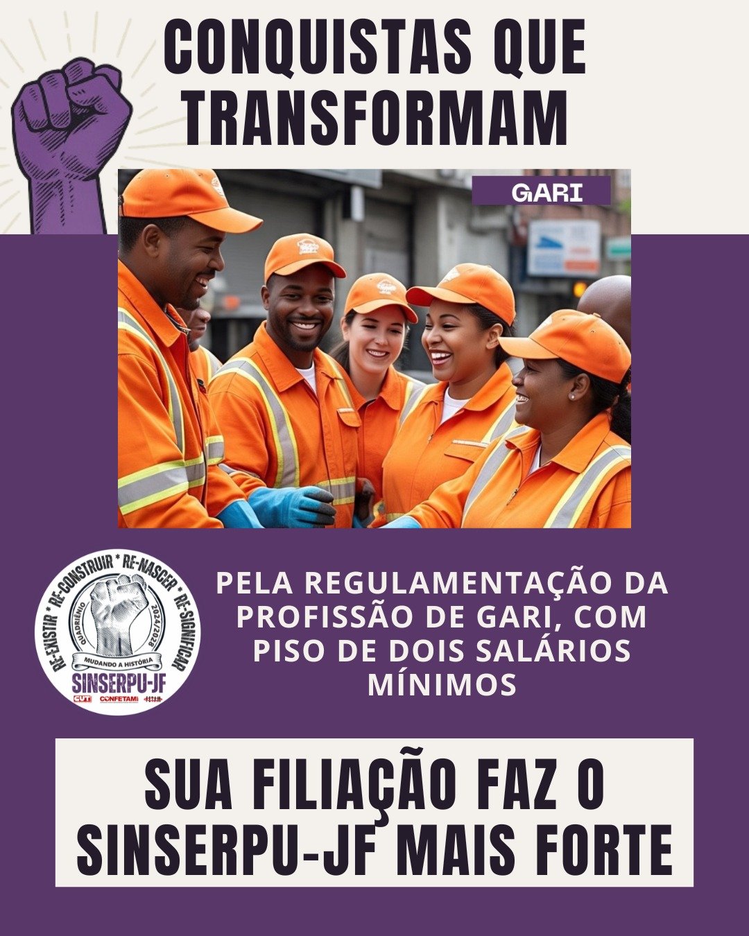 ✅ Pela regulamentação da profissão de gari, com piso de dois salários mínimos