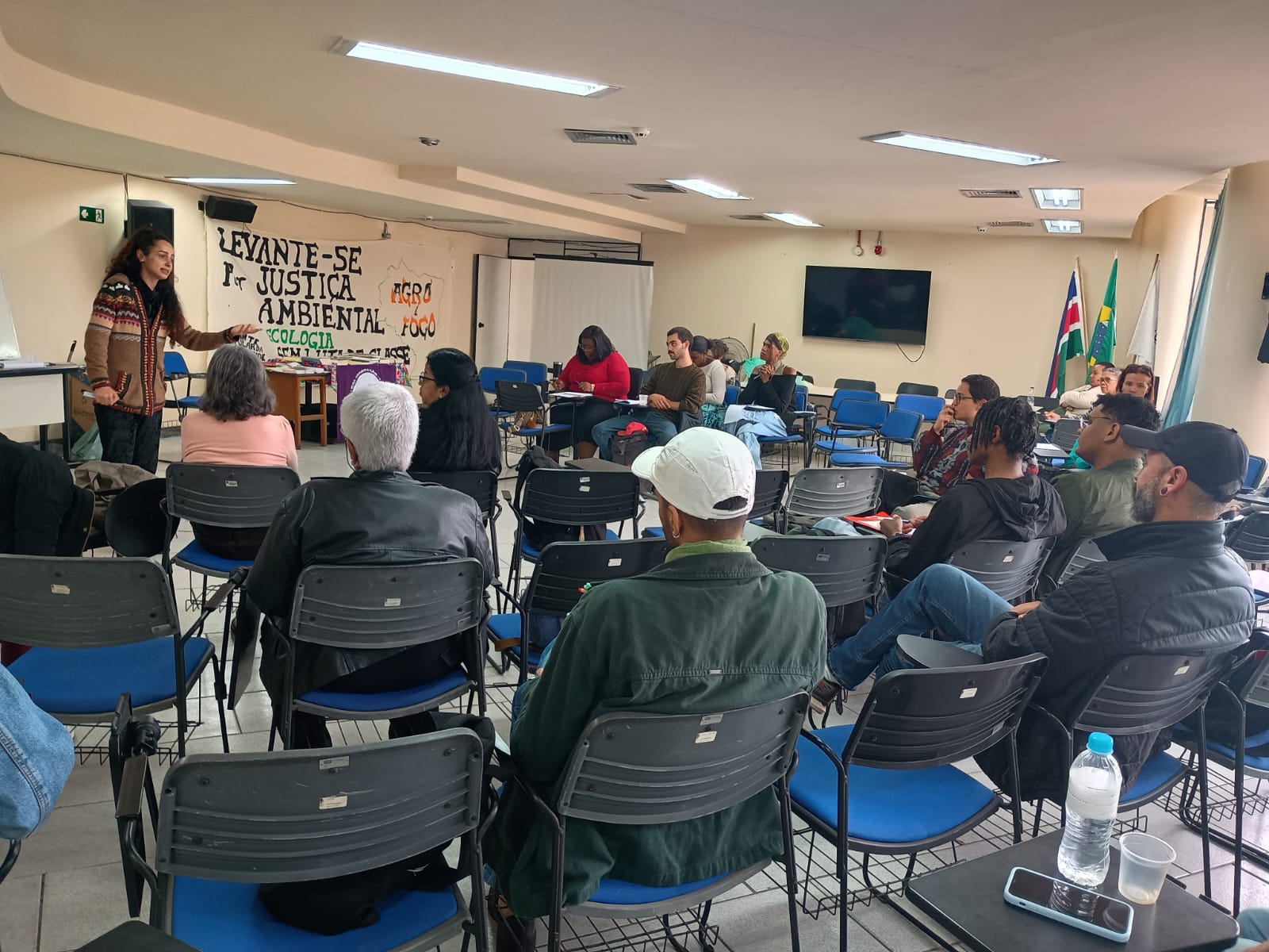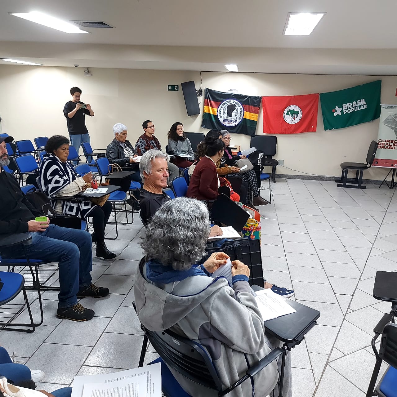 operário em construção/Compreender por que um tijolo/Valia mais do que um pão”…). Em seguida, antes das discussões sobre os temas, os sete NBs (Núcleos de Base) do Curso autodenominaram-se, usando homenagens, referências intelectuais e/ou vivências: “Americanidade”; “Cirene Candanda” (do qual Cláudio Dias é coordenador); “Paulo Freire”; “Curva do Lacet”; “Jequitibá Rosa”; “Semente da Revolução” e “Sintonia da Indignação”. No sábado, as atividades foram conduzidas pela economista, historiadora e especialista em Estudos Latino-americanos Mahara Jneesh.
