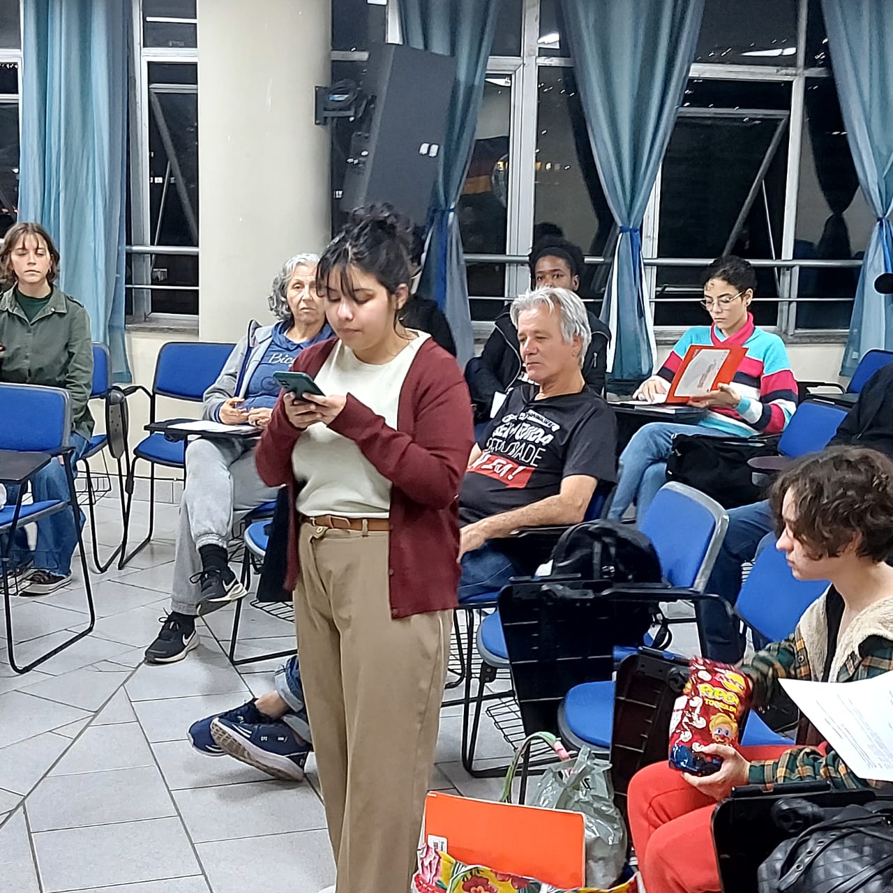 O primeiro dia foi iniciado com um jogral do poderoso poema “Operário em Construção”, de Vinicius de Moraes (…”De fato, como podia/Um