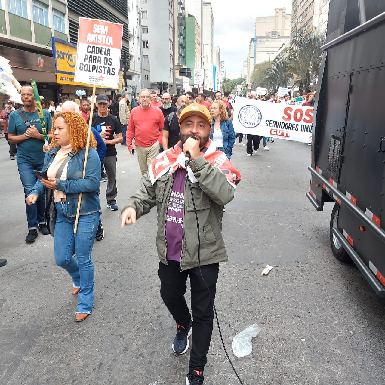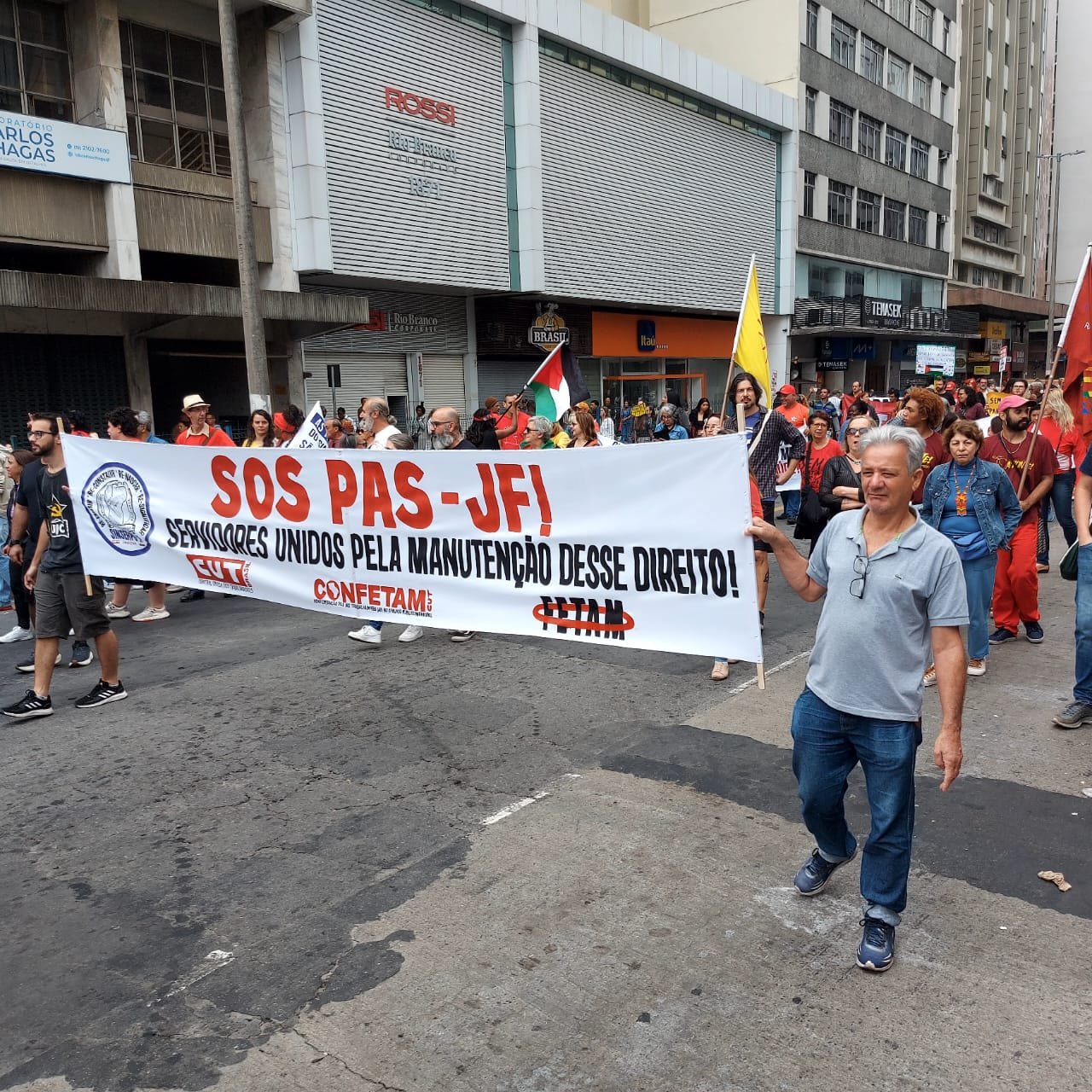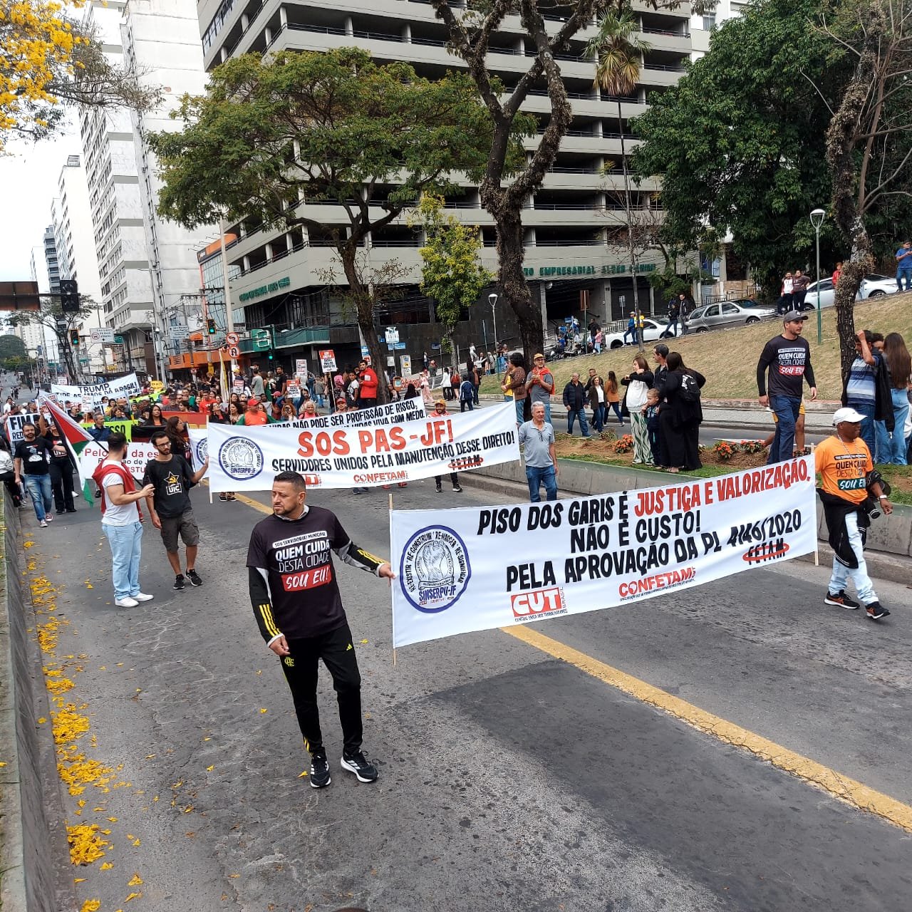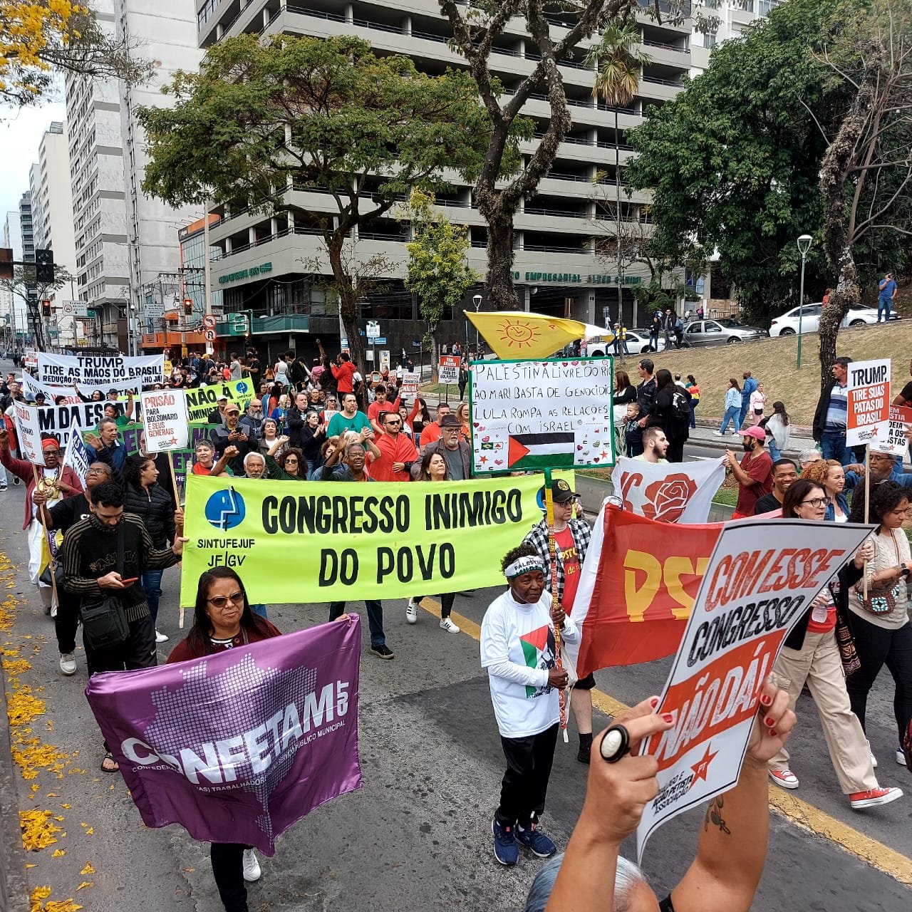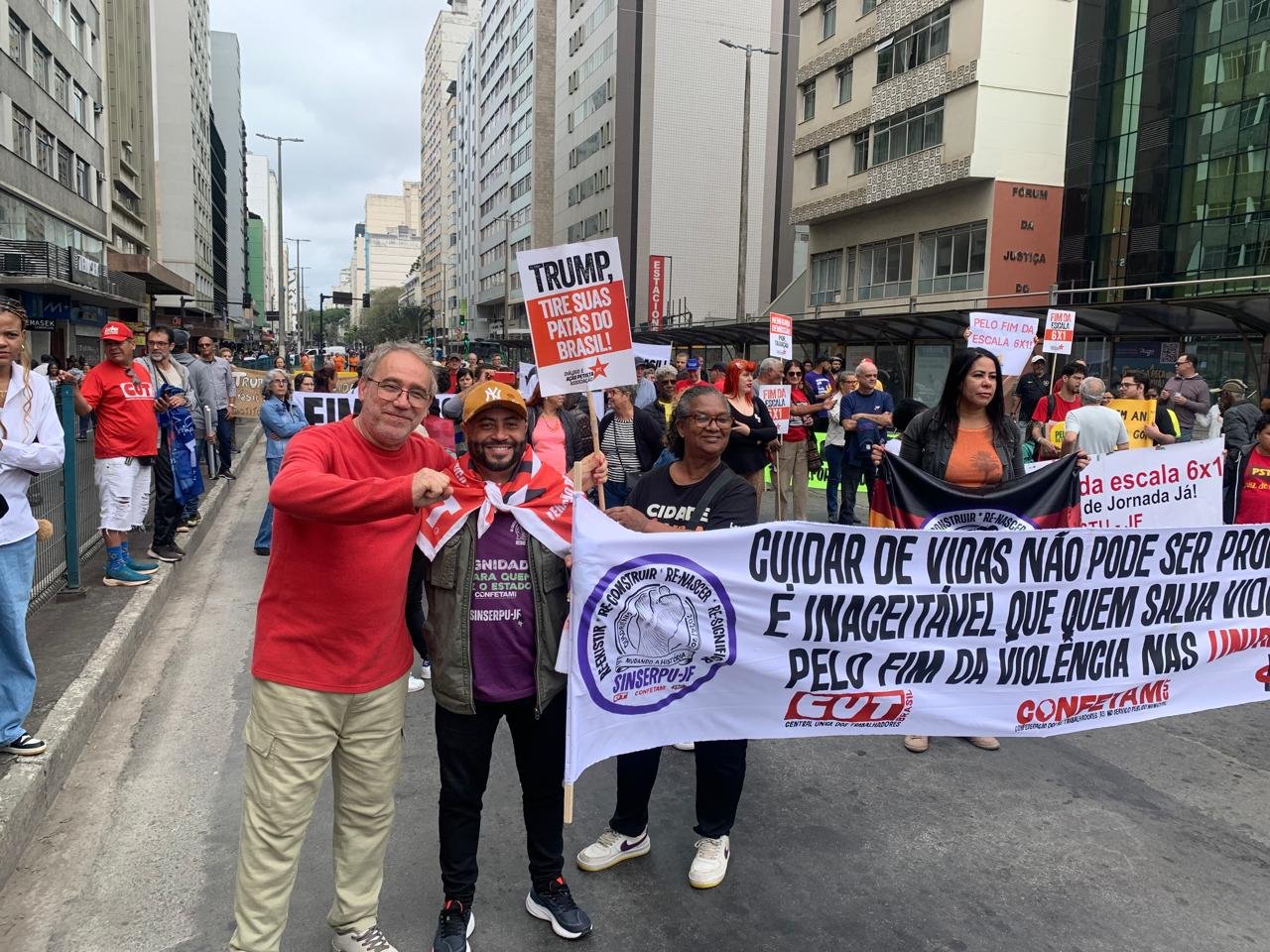 Além do SINSERPU-JF participaram vários outros sindicatos, centrais sindicais (CUT inclusive), partidos, políticos e entidades da sociedade civil organizada – que apoiaram também a isenção do Imposto de Renda para quem ganha até R$ 5 mil, repudiaram qualquer anistia para golpistas e traidores da pátria e possíveis interferências no julgamento de Jair Bolsonaro e dos generais golpistas, além de prestar solidariedade ao povo palestino, vítima de um genocídio praticado pelo Governo de Israel.