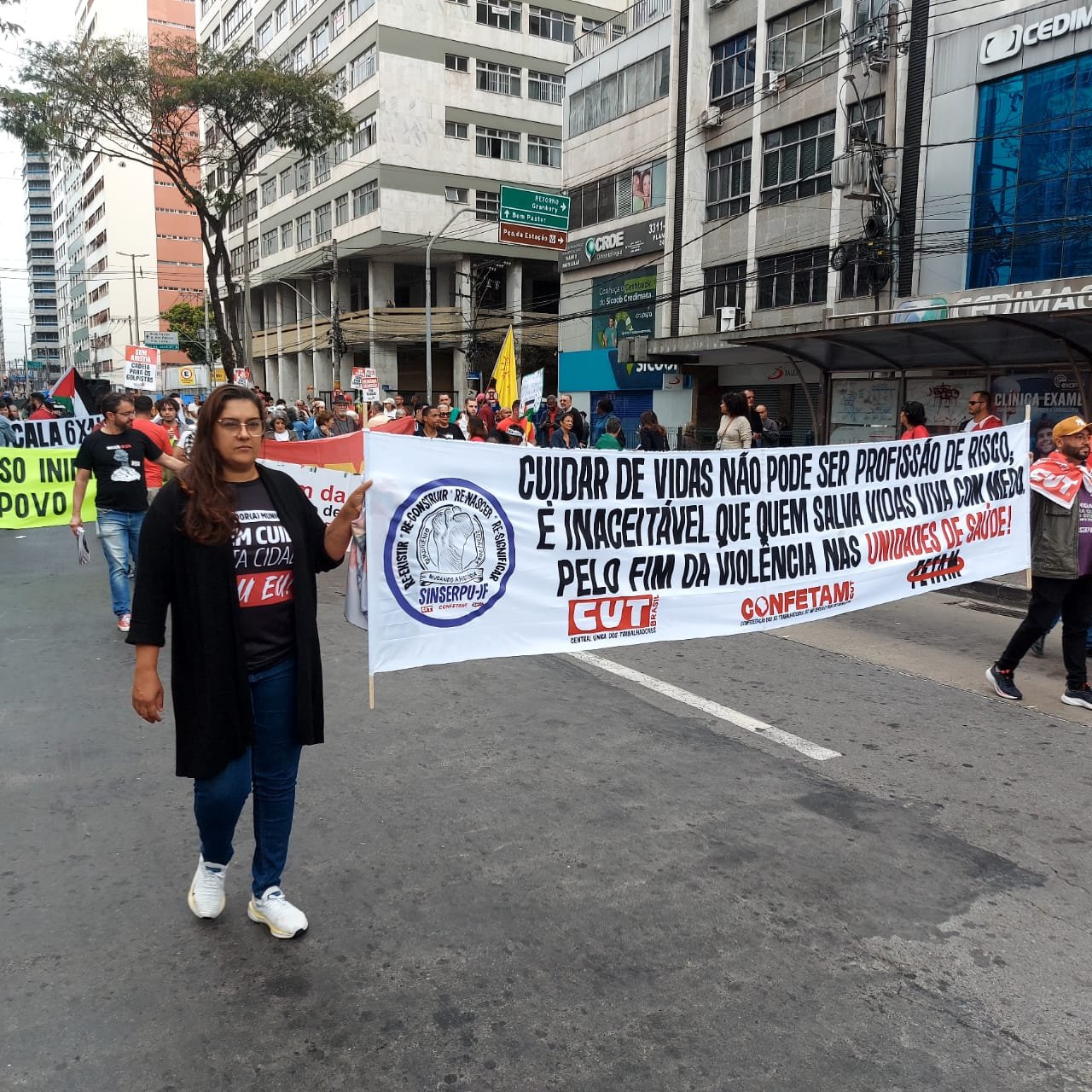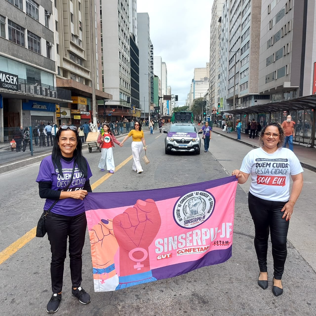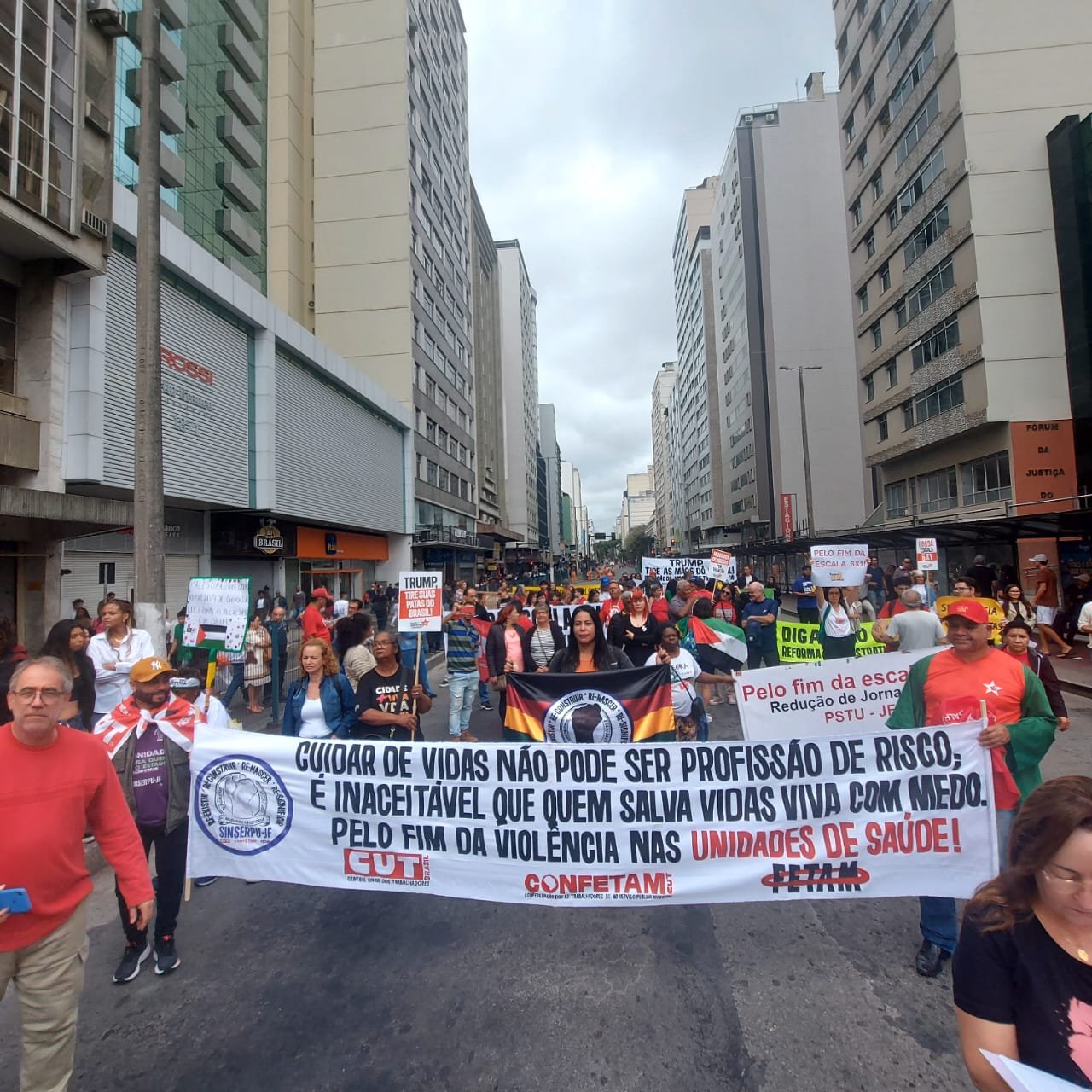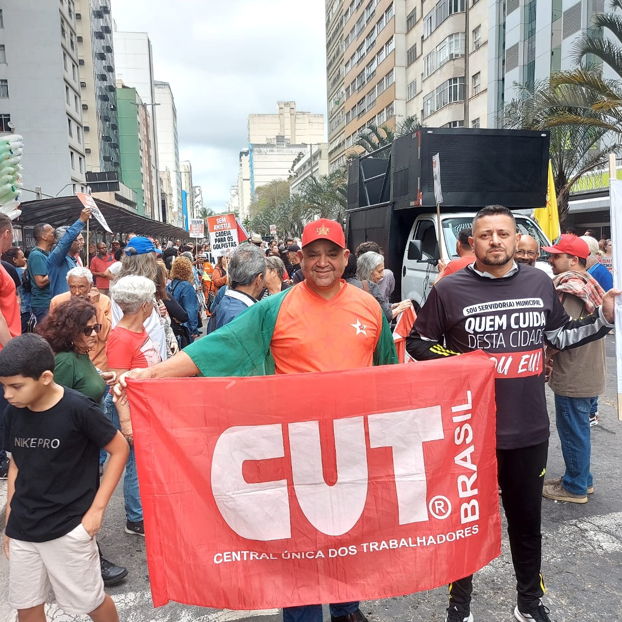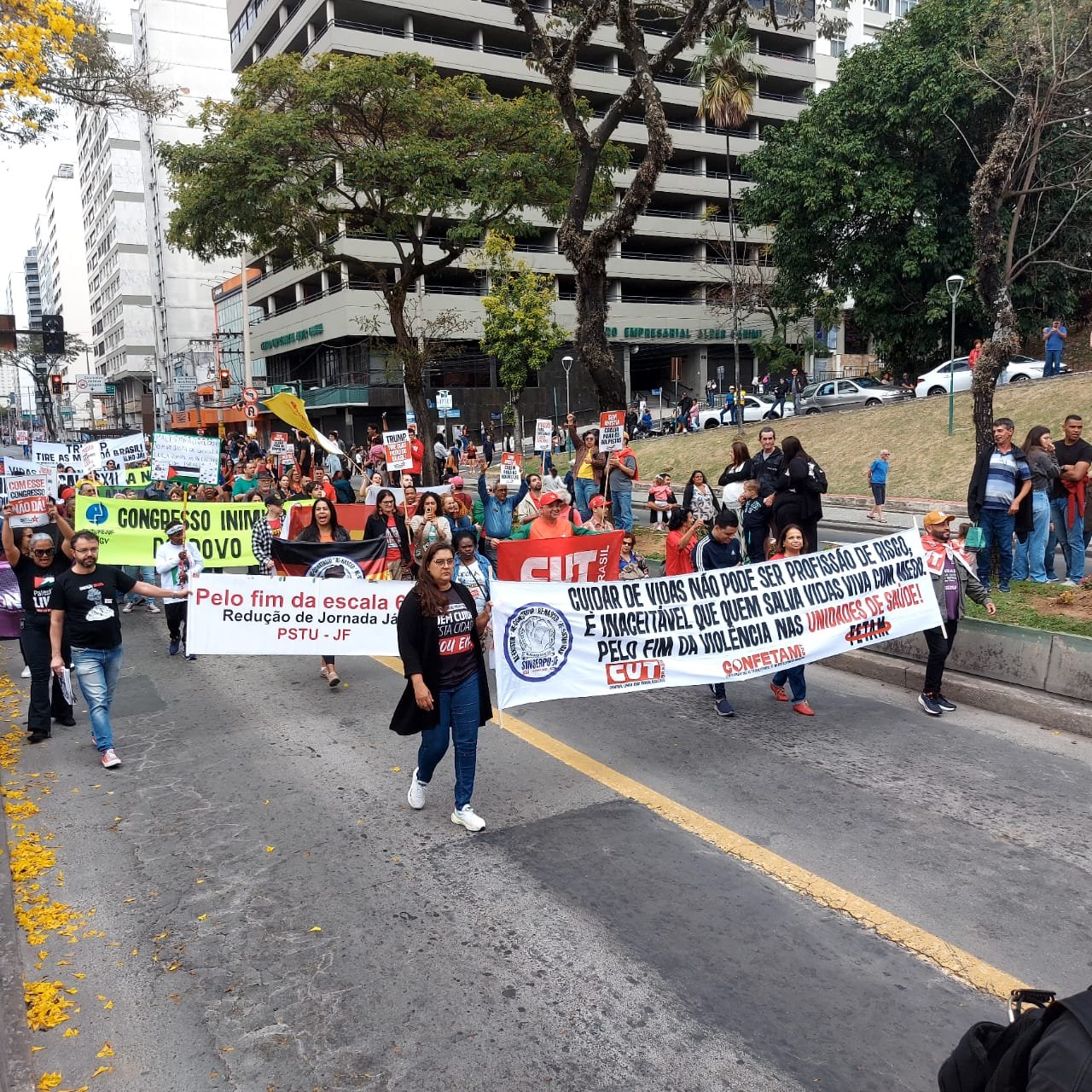 Além do SINSERPU-JF participaram vários outros sindicatos, centrais sindicais (CUT inclusive), partidos, políticos e entidades da sociedade civil organizada – que apoiaram também a isenção do Imposto de Renda para quem ganha até R$ 5 mil, repudiaram qualquer anistia para golpistas e traidores da pátria e possíveis interferências no julgamento de Jair Bolsonaro e dos generais golpistas, além de prestar solidariedade ao povo palestino, vítima de um genocídio praticado pelo Governo de Israel.