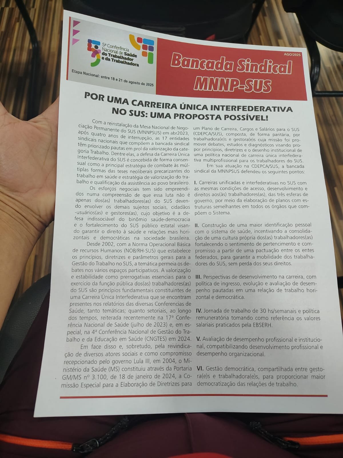 Paralelamente ao seminário, a agenda prevê incidências políticas no Congresso Nacional, com visitas a gabinetes parlamentares e ações de panfletagem para pressionar pelos avanços necessários na valorização dos profissionais da saúde pública.