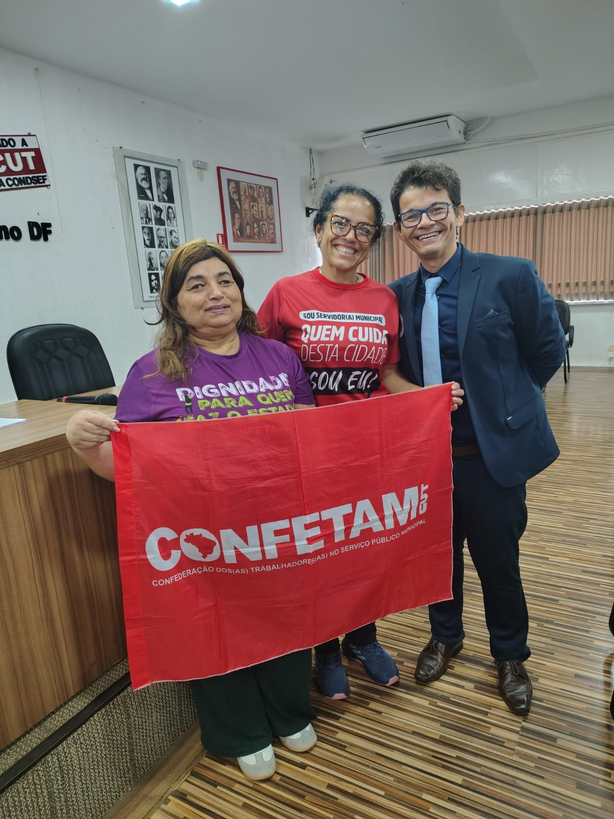 A presidenta do SINSERPU-JF, Deise Medeiros, acompanhada do vice-presidente Weber Wagner e dos diretores Anderson Gonçalves [...]