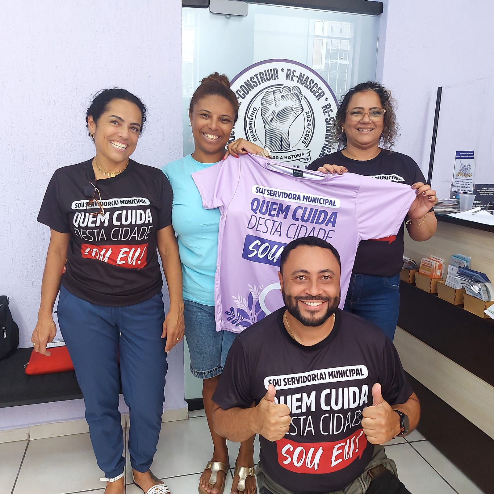 Roseli Costa, auxiliar de enfermagem do HPS, uma das 50 sorteadas com a camisa especial do SINSERPU-JF (presente do Dia do Servidor), foi a primeira a comparecer ao Sindicato, no início da tarde desta terça-feira (28 de outubro), para buscar o prêmio.