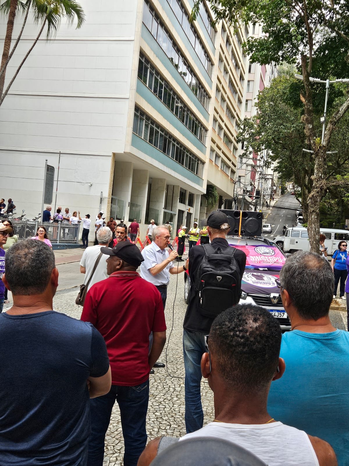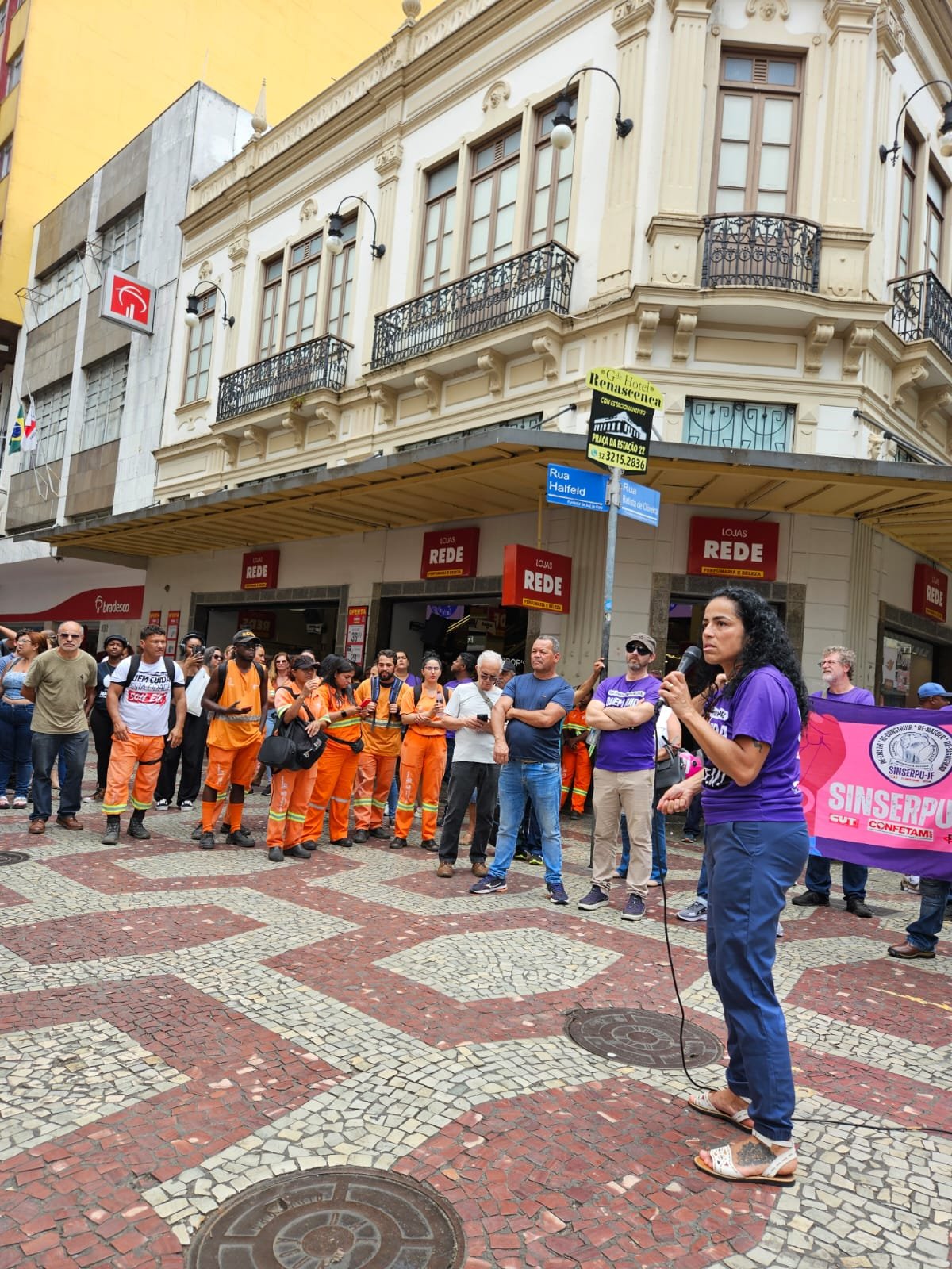 Em um dia de luta e resistência, o SINSERPU-JF escreveu, na manhã desta quarta-feira, 29, mais um capítulo de sua história em defesa do servidor municipal. Uma Assembleia Geral Extraordinária com paralisação atraiu dezenas de trabalhadores e trabalhadoras para a frente das escadarias da Câmara Municipal, no Parque Halfeld, em um protesto único na cidade contra a PEC 38, a chamada Reforma Administrativa.