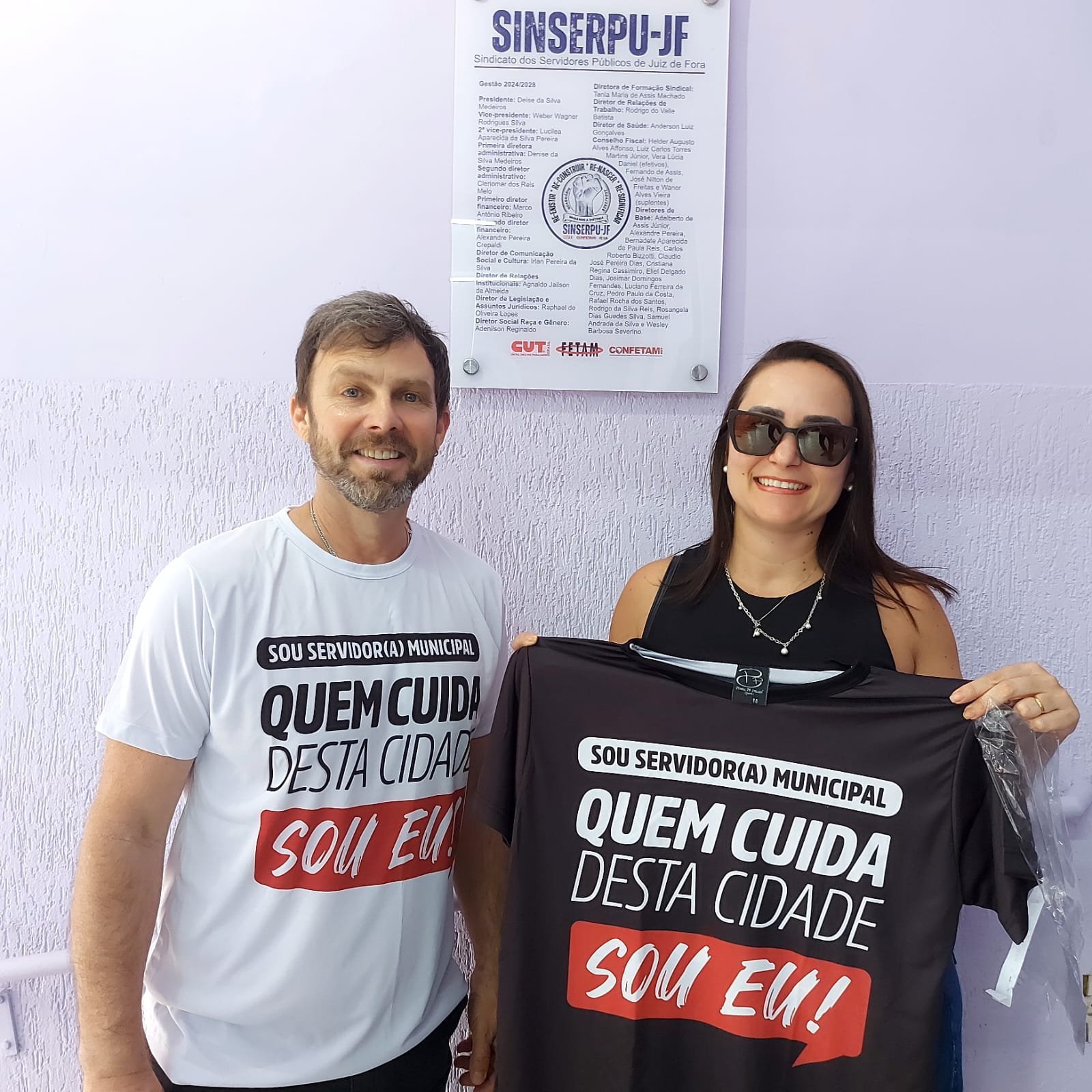 Na terça-feira (28 de outubro), Dia do Servidor, o SINSERPU-JF sorteou, entre seus filiados, 50 camisas alusivas à missão do trabalhador: “Sou servidor(a) municipal. Quem cuida desta cidade sou eu”.