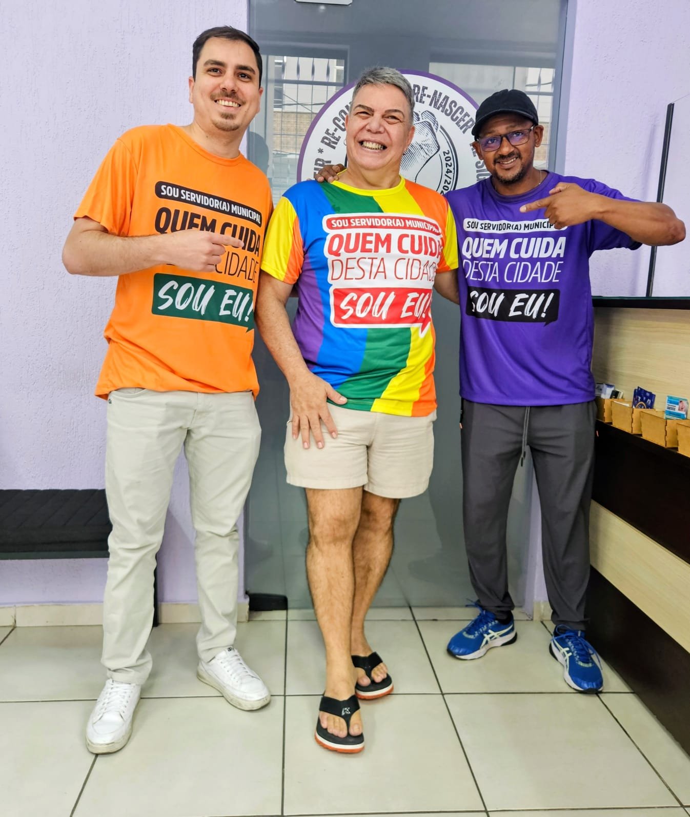 Já o técnico de enfermagem Carlos Alberto Berberick, que há 33 anos trabalha no HPS, gostou tanto da sua camisa arco-íris que fez questão de usá-la na foto com os diretores Raphael de Oliveira e Irlan Pereira (Comunicação Social e Cultura).