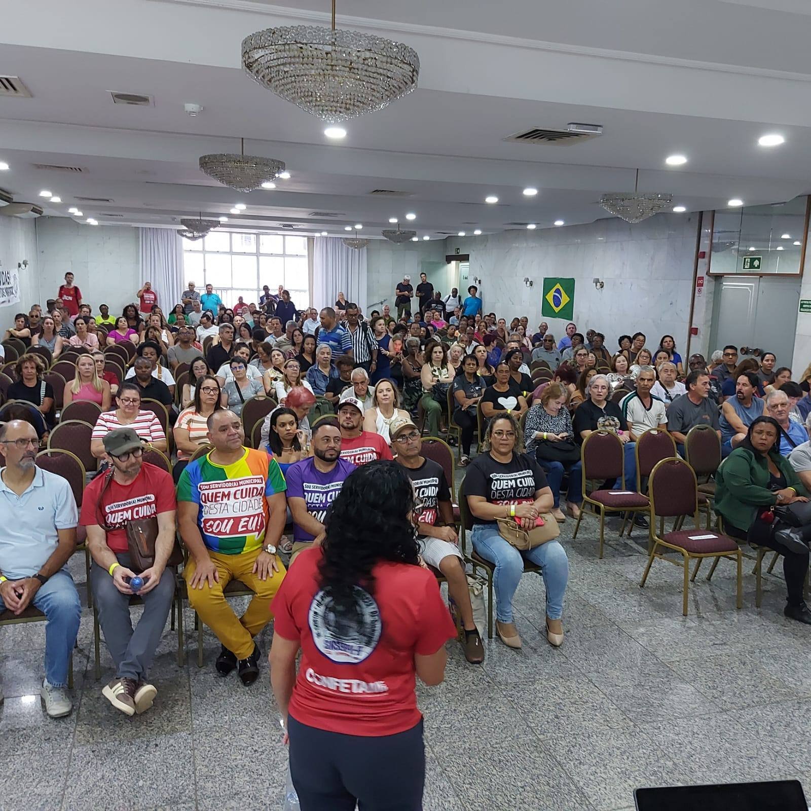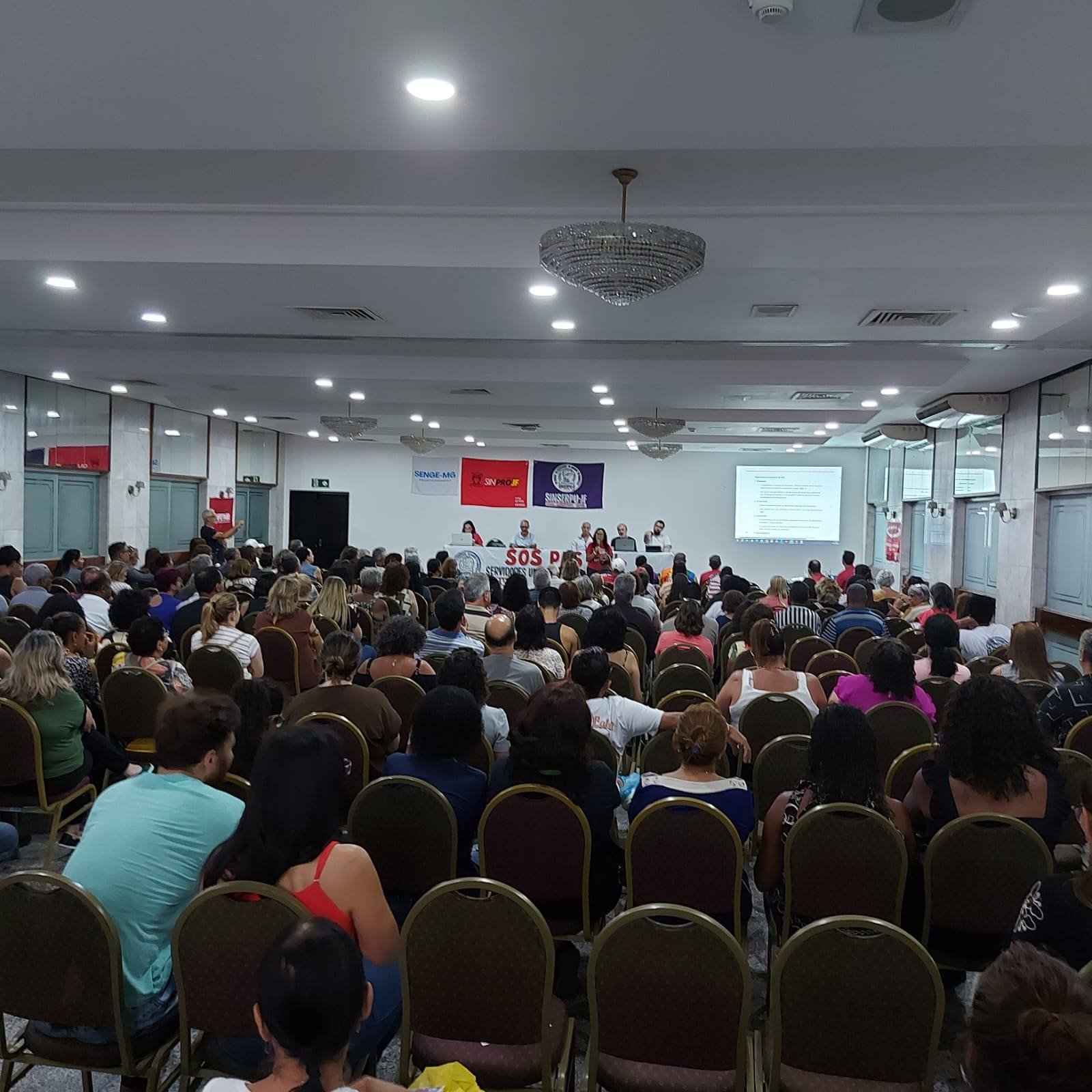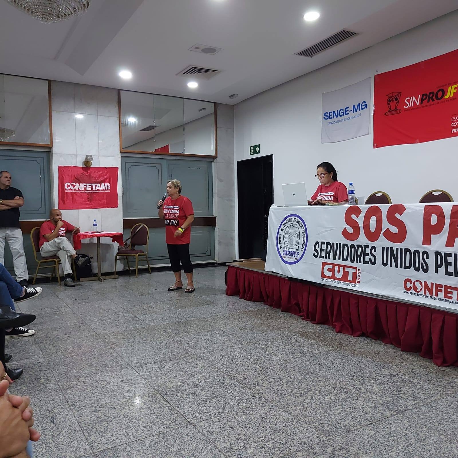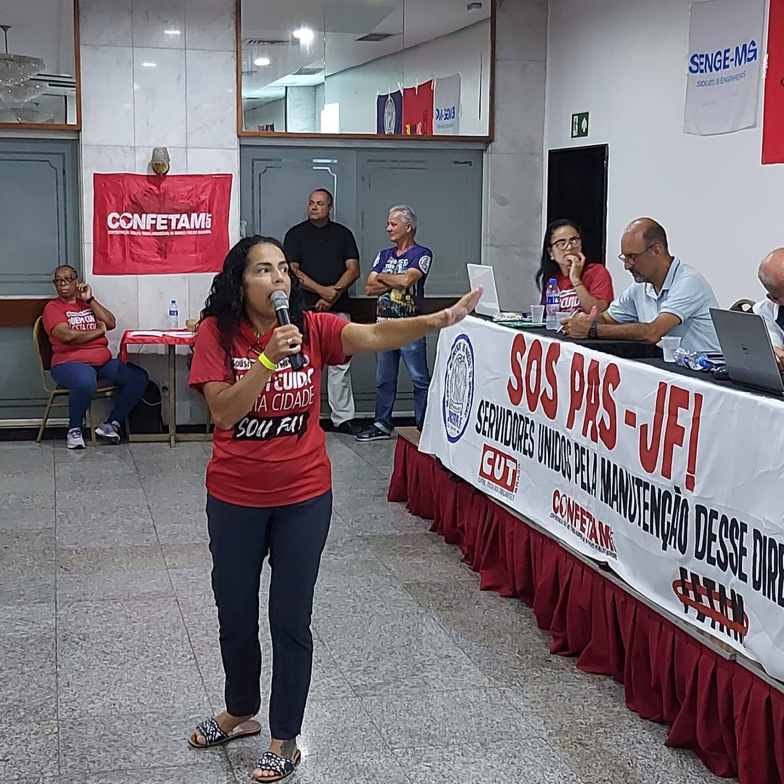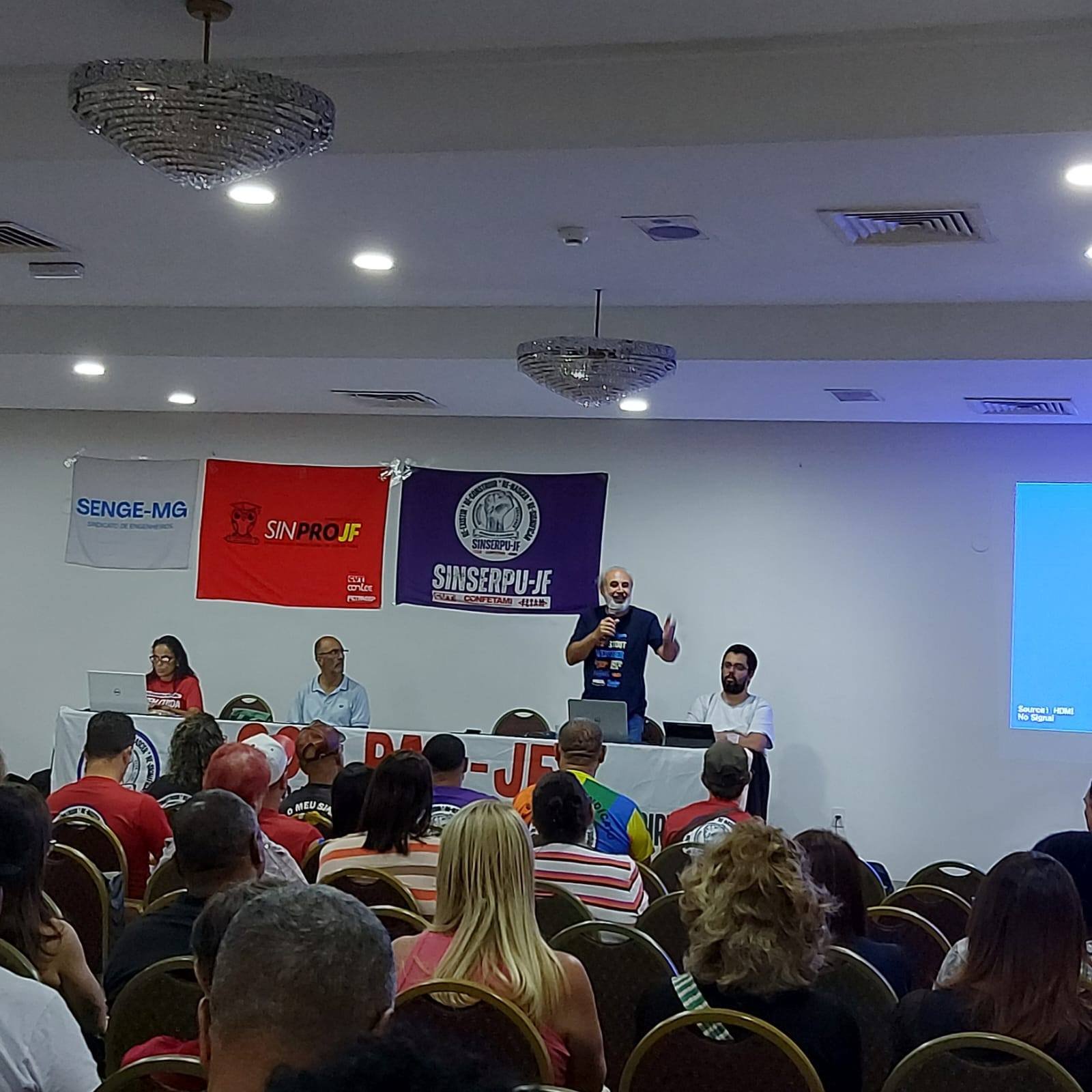 Na Assembleia de hoje, convocada pela União dos Sindicatos (SINSERPU-JF, SENGE, SINAGUA, SINPRO-JF e S