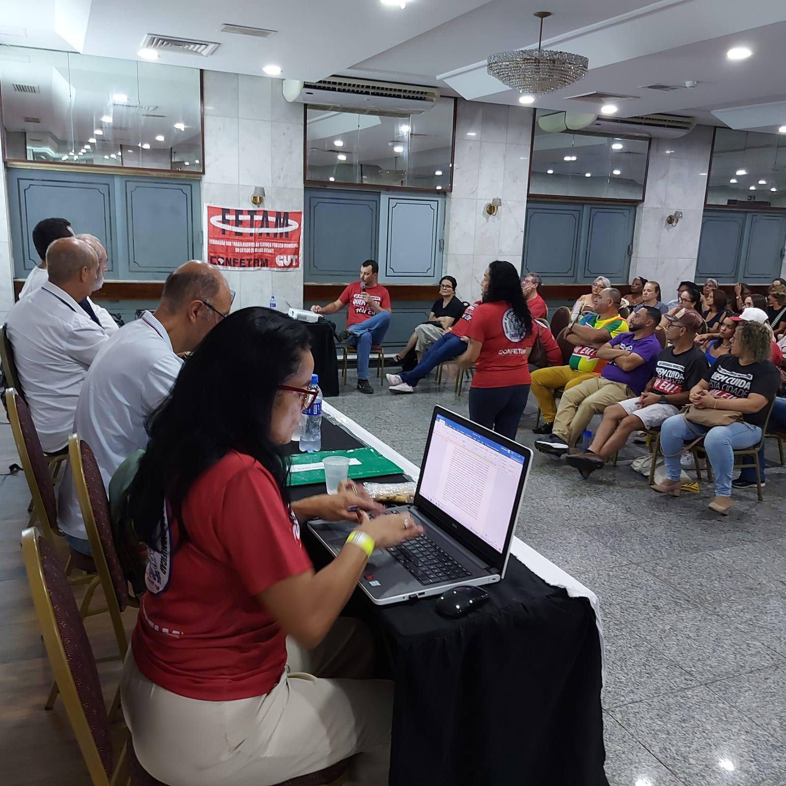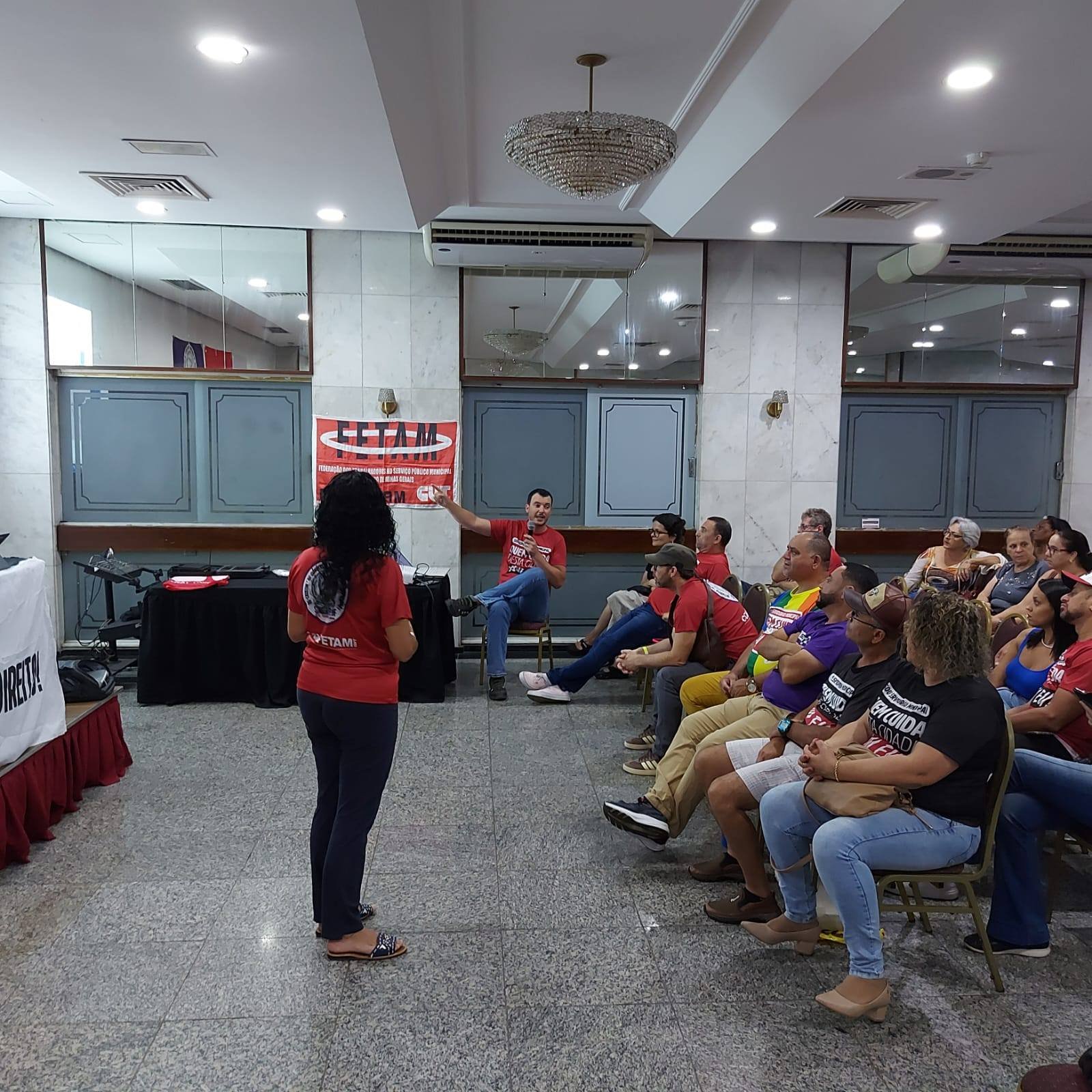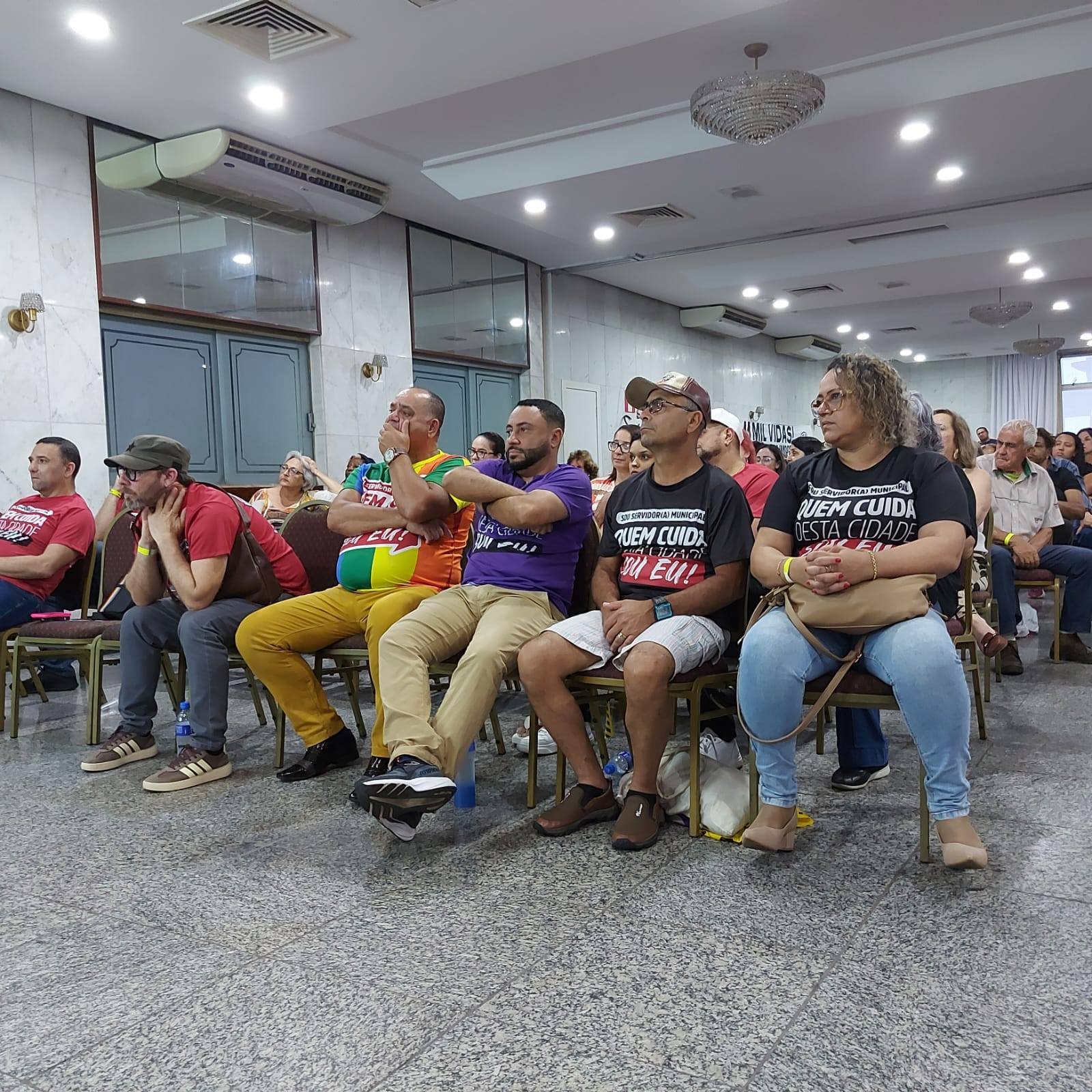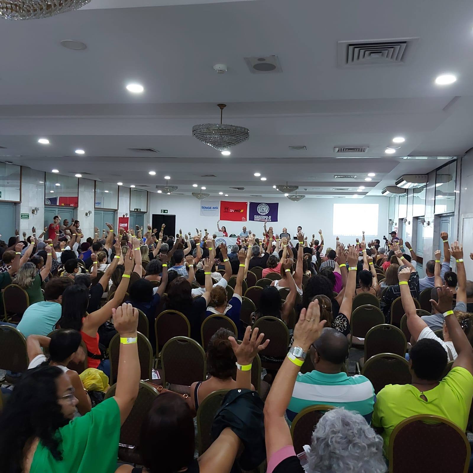 Na Assembleia de hoje, convocada pela União dos Sindicatos (SINSERPU-JF, SENGE, SINAGUA, SINPRO-JF e S