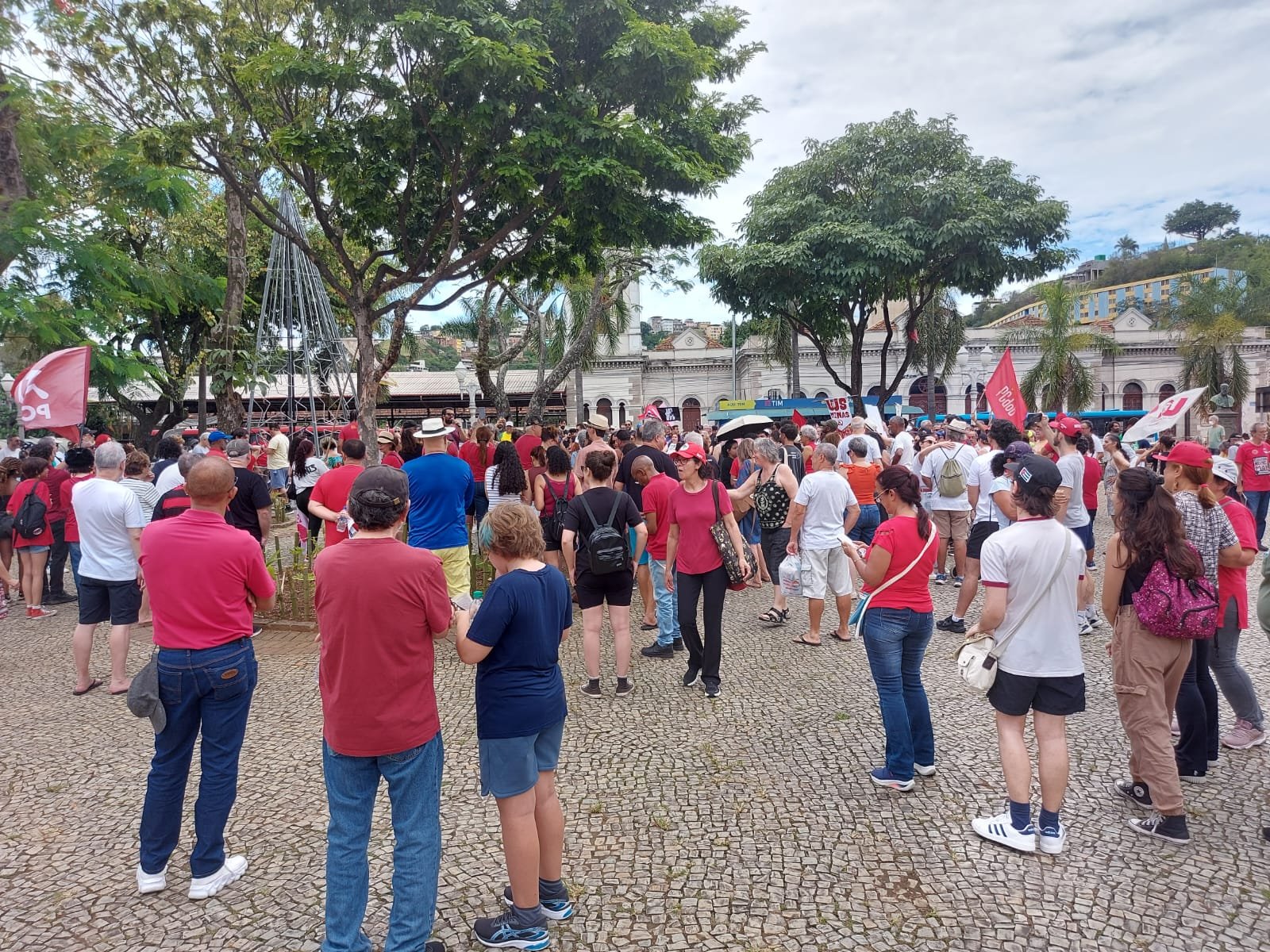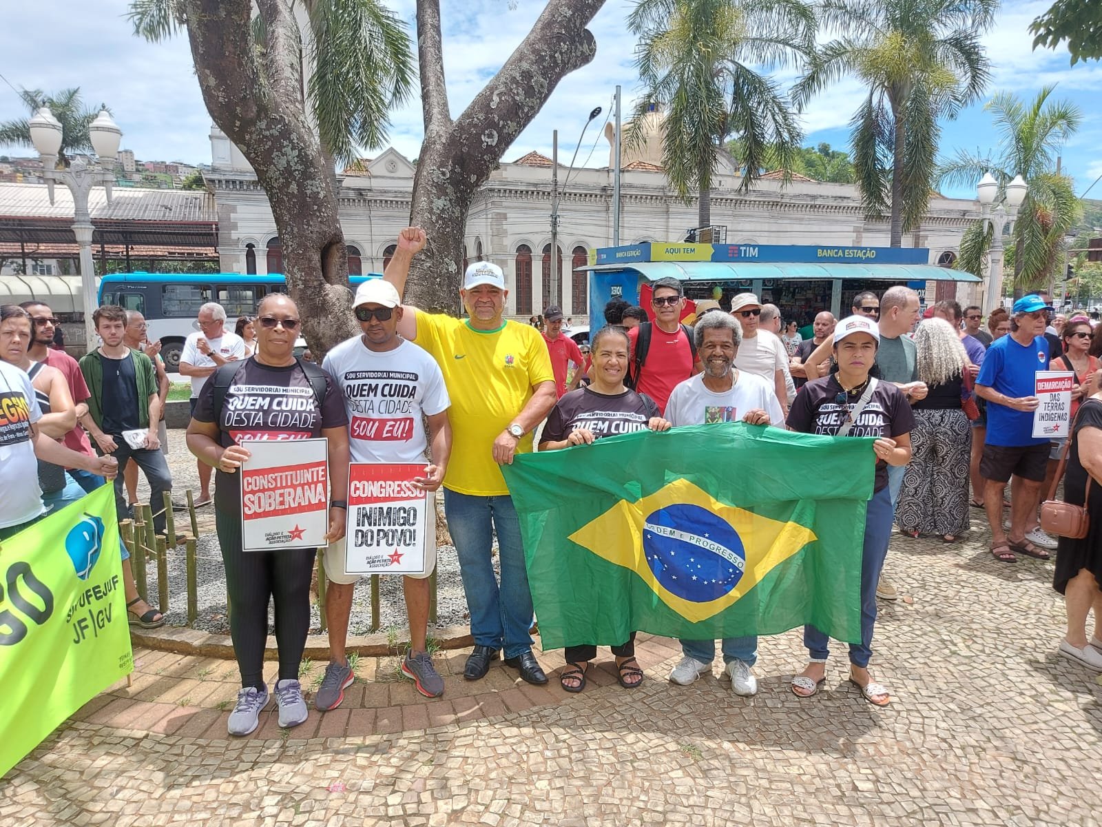No Ato, realizado na Praça da Estação, ela estava acompanhada dos diretores do SINSERPU-JF Irlan Pereira (Comunicação e Cultura), Agnaldo Jailson (Relações Institucionais), Tania Assis (Formação Sindical) e Bernadete de Paula (Base), e do conselheiro fiscal do Sindicato, Luiz Carlos Torres Júnior “Kaizin”.