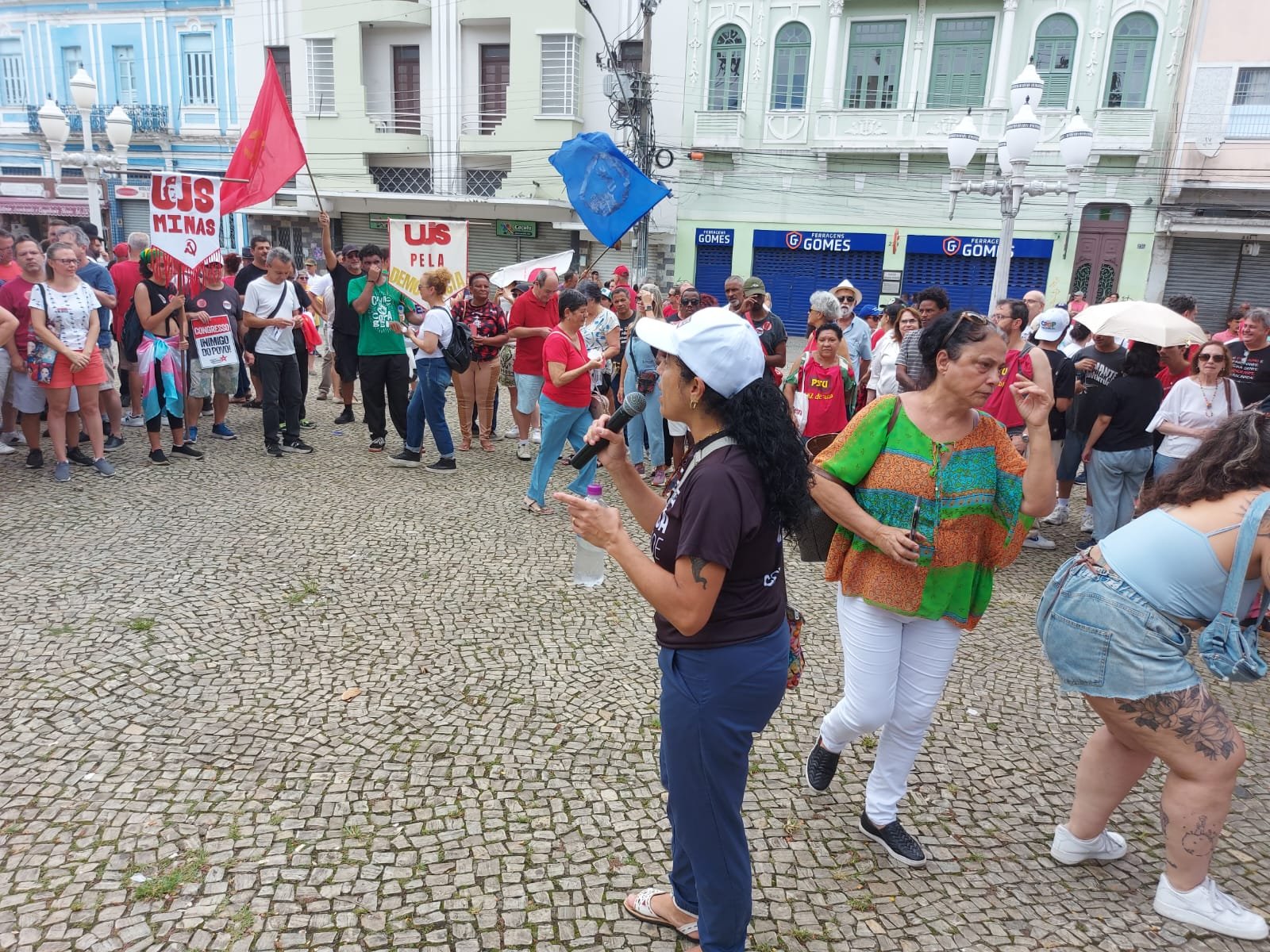 “A anistia a golpistas é inconcebível. Todos aqueles que atentaram contra Democracia, que é o que temos de mais importante hoje, têm que permanecer presos”, discursou a presidenta do SINSERPU-JF, Deise Medeiros, lembrando também que os mesmos deputados que querem anistia para golpistas usam a mesma prática (votações clandestinas) para atacar os trabalhadores: “Eles têm aprovado, na madrugada, leis que penalizam todo o povo brasileiro e os direitos da classe trabalhadora. E vamos para as ruas sempre que for necessário se defender desse Congresso inimigo do povo”