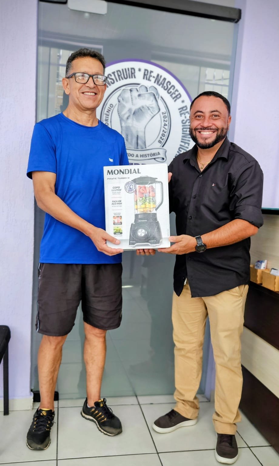▶️ Luiz Carlos Mendonça, da Secretaria de Saúde, que recebeu seu liquidificador das mãos do diretor de Saúde Anderson Luiz Gonçalves, o “Andinho”.