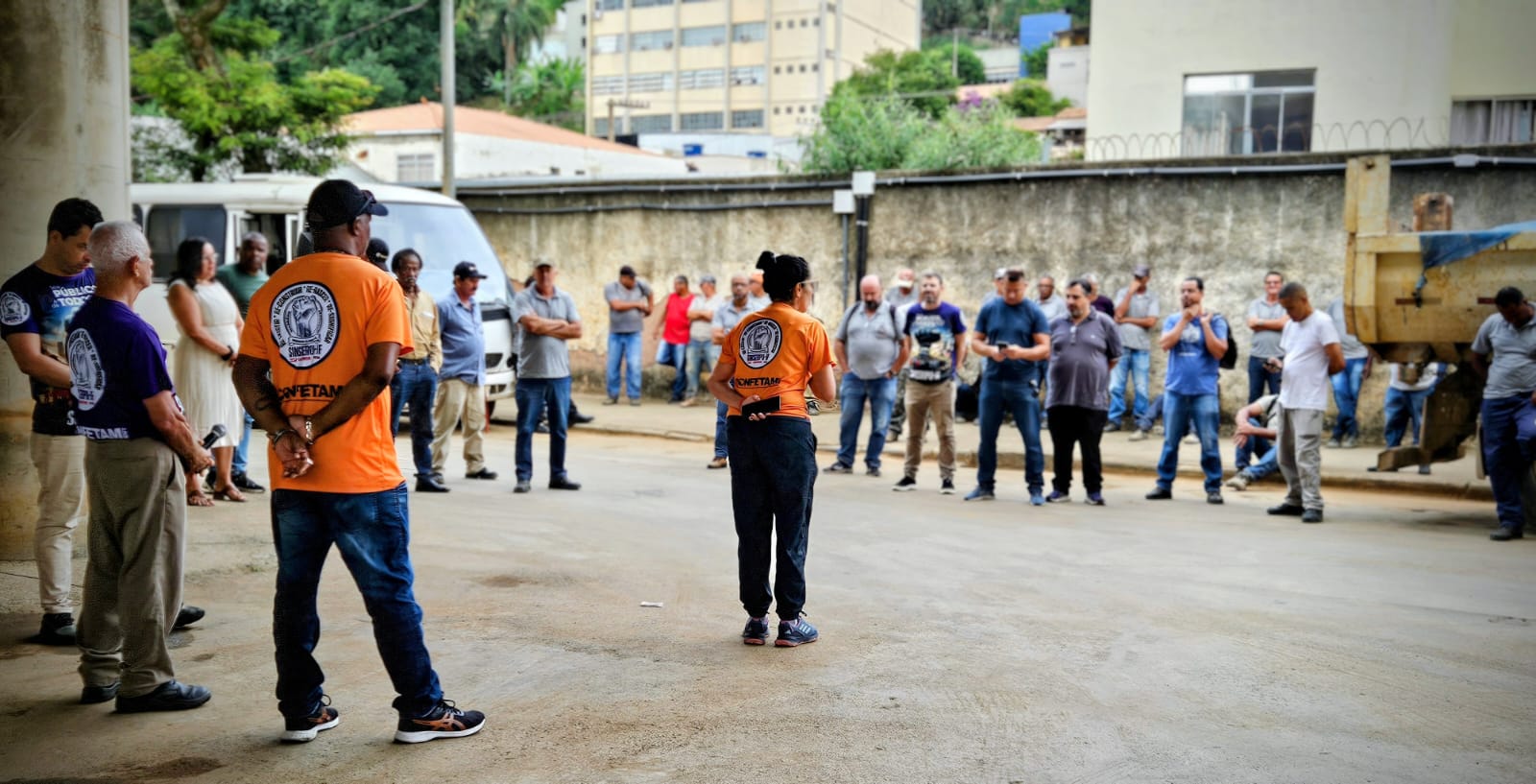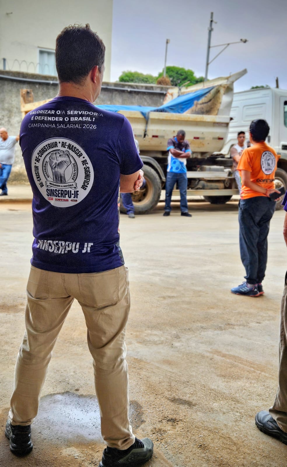 Na manhã desta terça-feira, 31, a presidenta do SINSERPU-JF, Deise Medeiros, esteve no pátio da Secretaria de Obras (SO) acompanhada dos diretores Adenilson Reginaldo “Zé Neguinho” (Social, Raça e Gênero), Alexandre Crepaldi “Chaves” (Financeiro), Anderson Gonçalves “Andinho” (Saúde), Irlan Pereira (Comunicação Social e Cultura), Marco Ribeiro (Financeiro), Tânia Machado (Formação Sindical) e Wanor Vieira (Conselho Fiscal). Em um momento de diálogo direto com os servidores, Deise iniciou a conversa agradecendo o trabalho incansável deles durante o período de calamidade na cidade, destacando que, enquanto o poder público muitas vezes invisibiliza esses esforços, o sindicato tem como missão mostrar a importância de cada trabalhador.