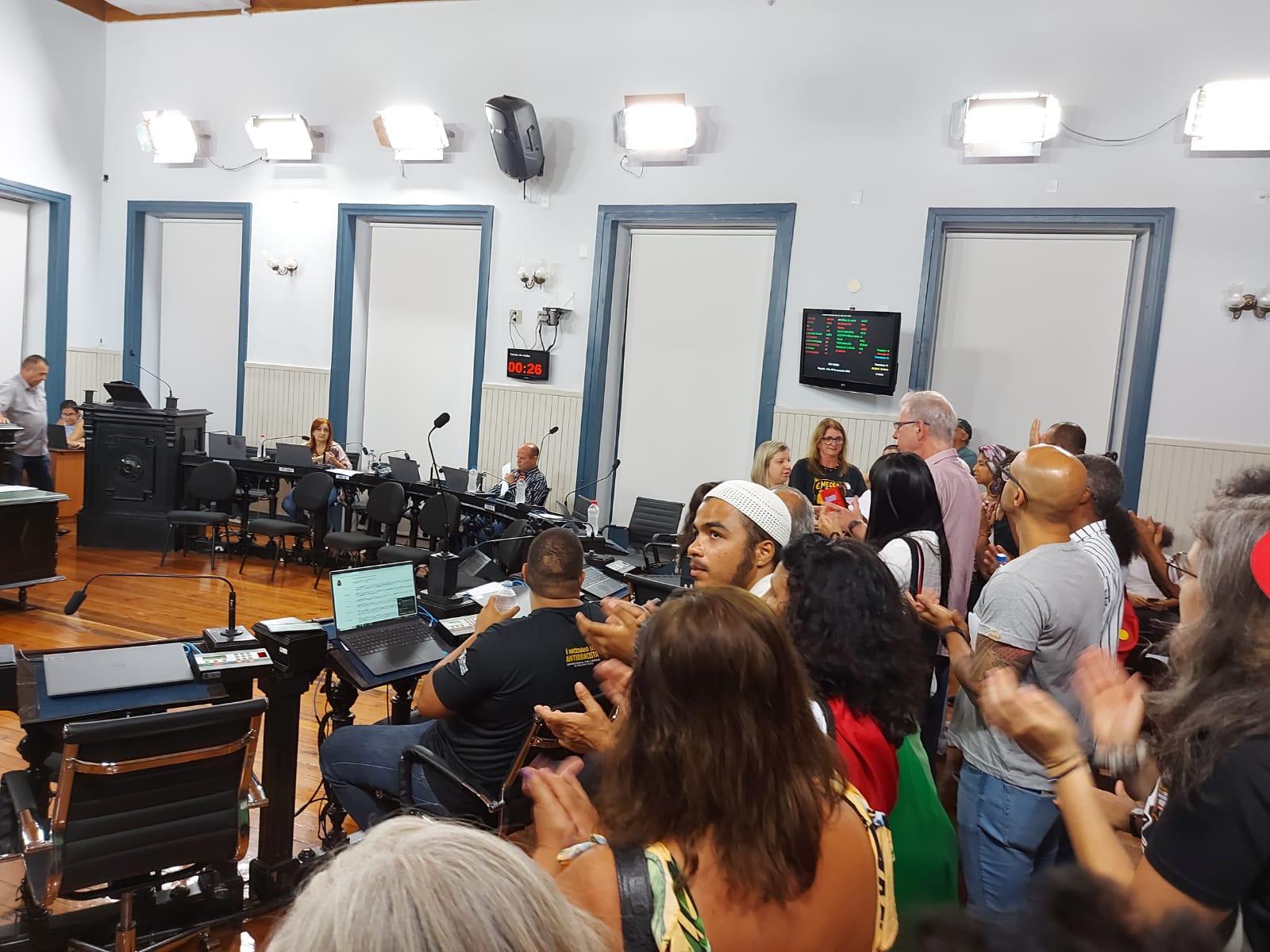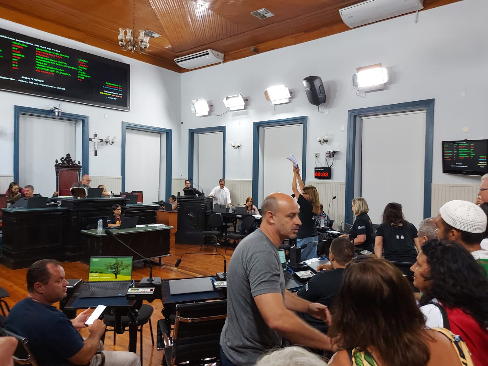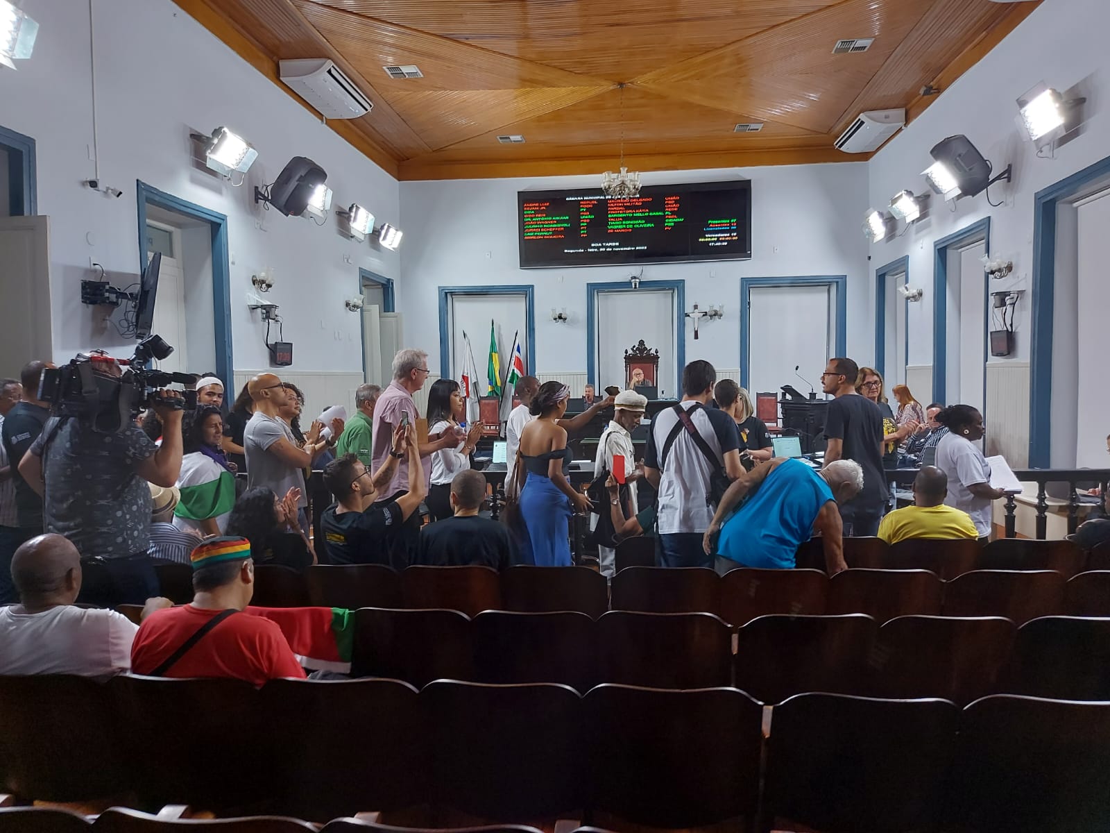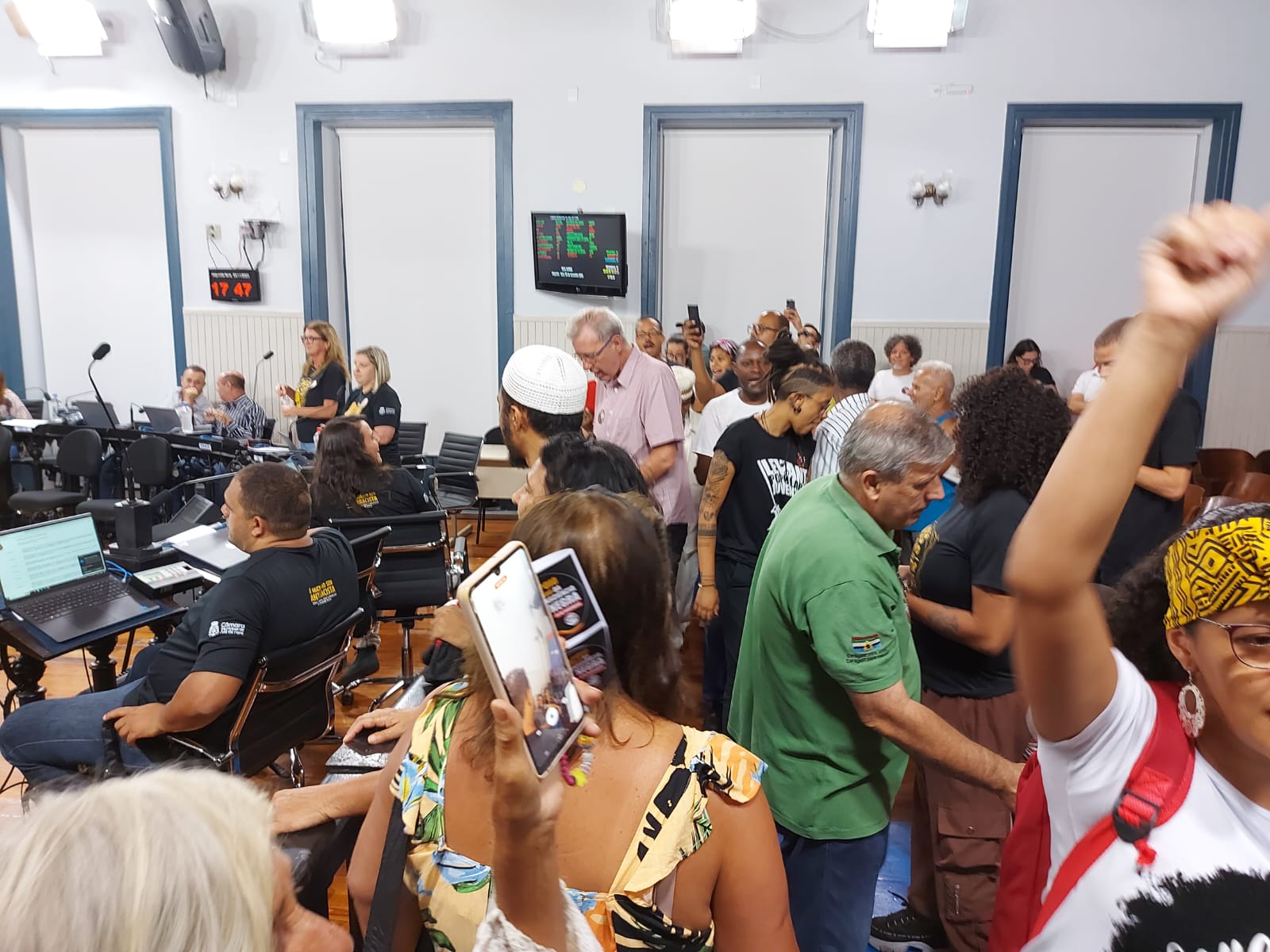 A tentativa, no entanto, foi em vão. Com exceção de Cida Oliveira, Laiz Perrut (PT), Tiago Bonecão (Cidadania) e Tallia Sobral (PSOL), os demais vereadores presentes não se sensibilizaram. Sargento Mello Casal (PL) chegou a discursar contra o ato e o presidente da Câmara, José Márcio Garotinho (PV), citando “seguir o regimento da Casa”, não permitiu que o documento fosse entregue, simbolicamente, aos parlamentares. Posteriormente, durante a sessão deliberativa, Mello Casal adiou a apreciação do projeto ao “pedir vista” do processo.