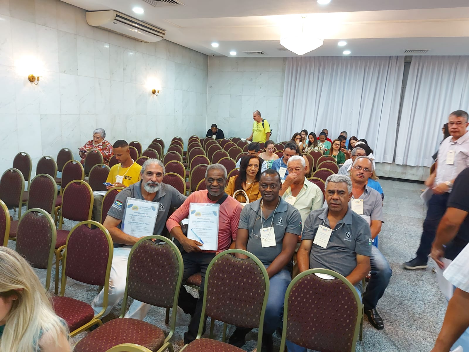 Ainda em março, durante quatro dias, os diretores do SINSERPU-JF Antônio Carlos de Sant’Ana, Rozivaldo Gervásio, Ivan Catarina e Júlio Mendonça marcaram presença na 11ª Conferência Municipal de Saúde (foto 8). Uma das atrações da abertura do evento, no dia 23, foi Júlio Mendonça, também ator e produtor cultural, que encenou uma linha do tempo da história do tratamento de saúde no país (foto 9).