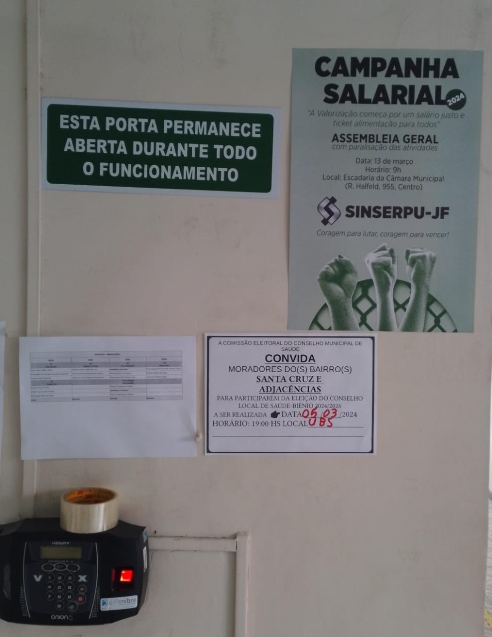 O SINSERPU-JF, através dos diretores Ivan Catarina e Luiz Gustavo Nascimento, começaram, nesta sexta-feira (8 de março), a divulgar in loco a Assembleia Geral, com paralisação das atividades, de quarta-feira (13 de março) – quando os servidores vão analisar a proposta da Prefeitura referente à campanha salarial 2024. Foram visitados locais de trabalho nos bairros Benfica, Barreira do Triunfo, Cruzeiro do Sul, Industrial, Ipiranga, Jóquei Clube, Nova Era, Santa Cruz, Santa Efigênia, Santa Luzia, São Judas Tadeu, Teixeiras e Vale Verde.