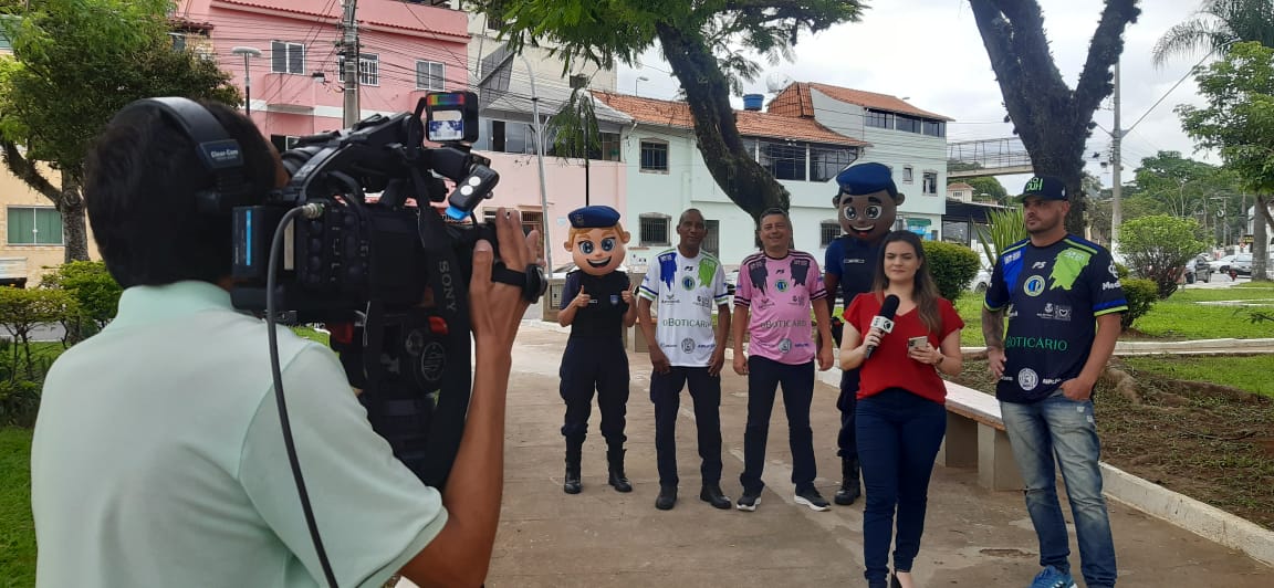 Nas fotos, a divulgação do evento em uma reportagem ao vivo da TV Integração/Juiz de Fora – quando foi anunciado, pelos organizadores do Jogo Solidário, a meta de 4 toneladas de alimentos.