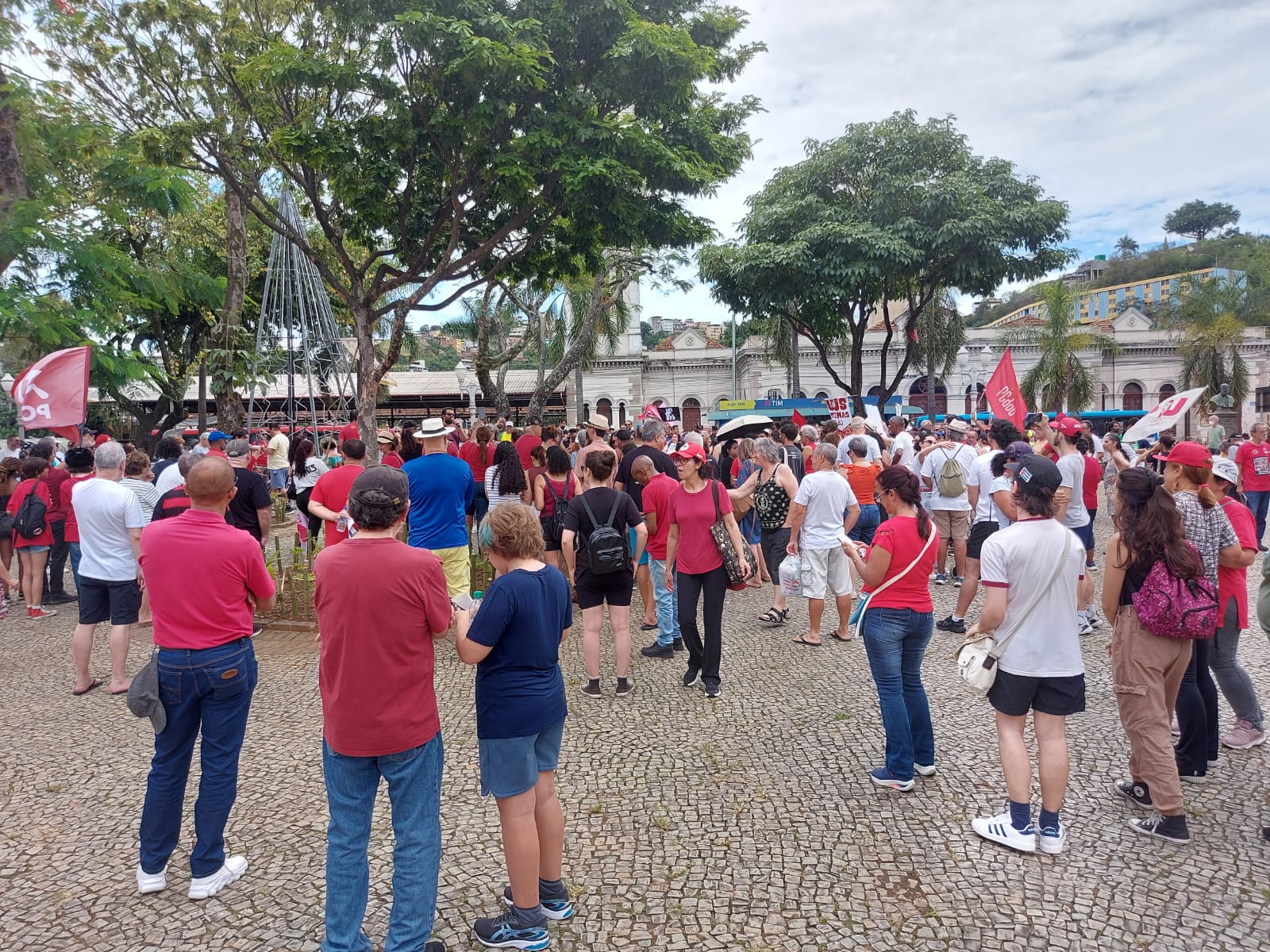 No Ato, realizado na Praça da Estação, ela estava acompanhada dos diretores do SINSERPU-JF Irlan Pereira (Comunicação e Cultura), Agnaldo Jailson (Relações Institucionais), Tania Assis (Formação Sindical) e Bernadete de Paula (Base), e do conselheiro fiscal do Sindicato, Luiz Carlos Torres Júnior “Kaizin”.