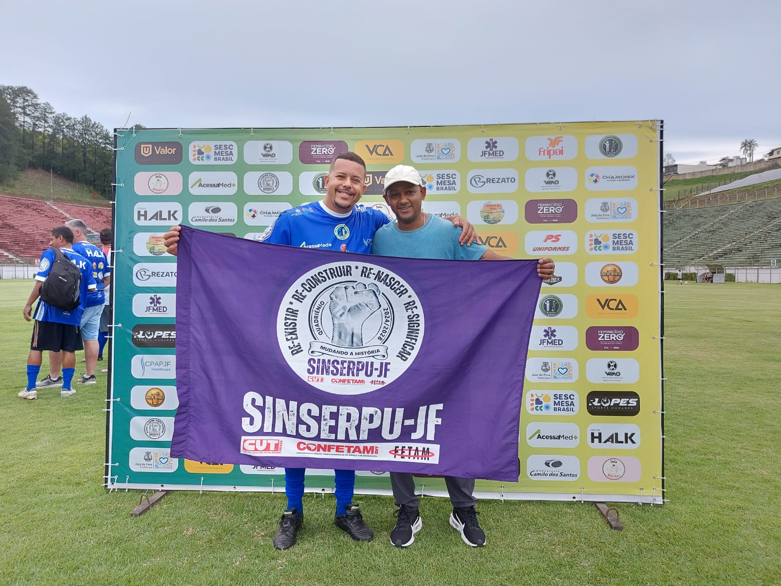 No primeiro jogo, o time Azul (“Seleção brasileira da Copa de 58” – a do menino Pelé) venceu o time Amarelo (“Brasil da Copa de 62”, o de Garricha) por 7 a 0. No time derrotado, jogou, no primeiro tempo, o diretor do SINSERPU-JF Marco Antônio Ribeiro.