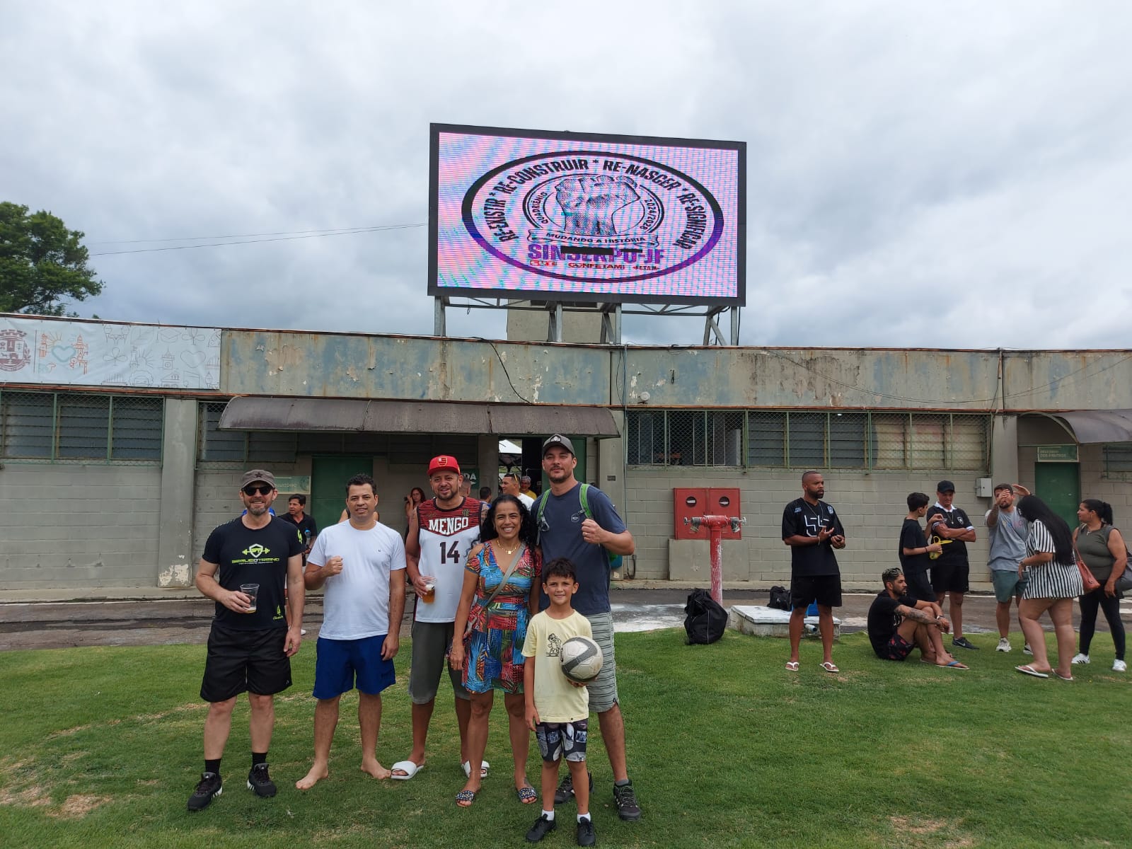Pelo segundo ano consecutivo, o SINSERPU-JF copatrocinou, apoiou e prestigiou, na manhã/tarde deste sábado (13 de dezembro), o Jogo Solidário Amigos da Guarda – evento beneficente promovido por integrantes da Guarda Municipal de Juiz de Fora, que tem o objetivo principal de arrecadar alimentos, a serem doados às famílias necessitadas. “É a quinta edição de um dos acontecimentos mais significativos da cidade, quando o assunto é solidariedade. A ação é tão importante que no ano passado arrecadou quatro toneladas de alimentos e este ano tem a meta de cinco toneladas”, lembrou a presidenta do Sindicato, Deise Medeiros, que estava acompanhada do vice-presidente Weber Wagner e dos diretores Marco Antonio Ribeiro, Alexandre Crepaldi “Chaves” (financeiros), Irlan Pereira (Comunicação e Cultura), Anderson Luís Gonçalves “Andinho” (Saúde) e Rodrigo Reis (Base).