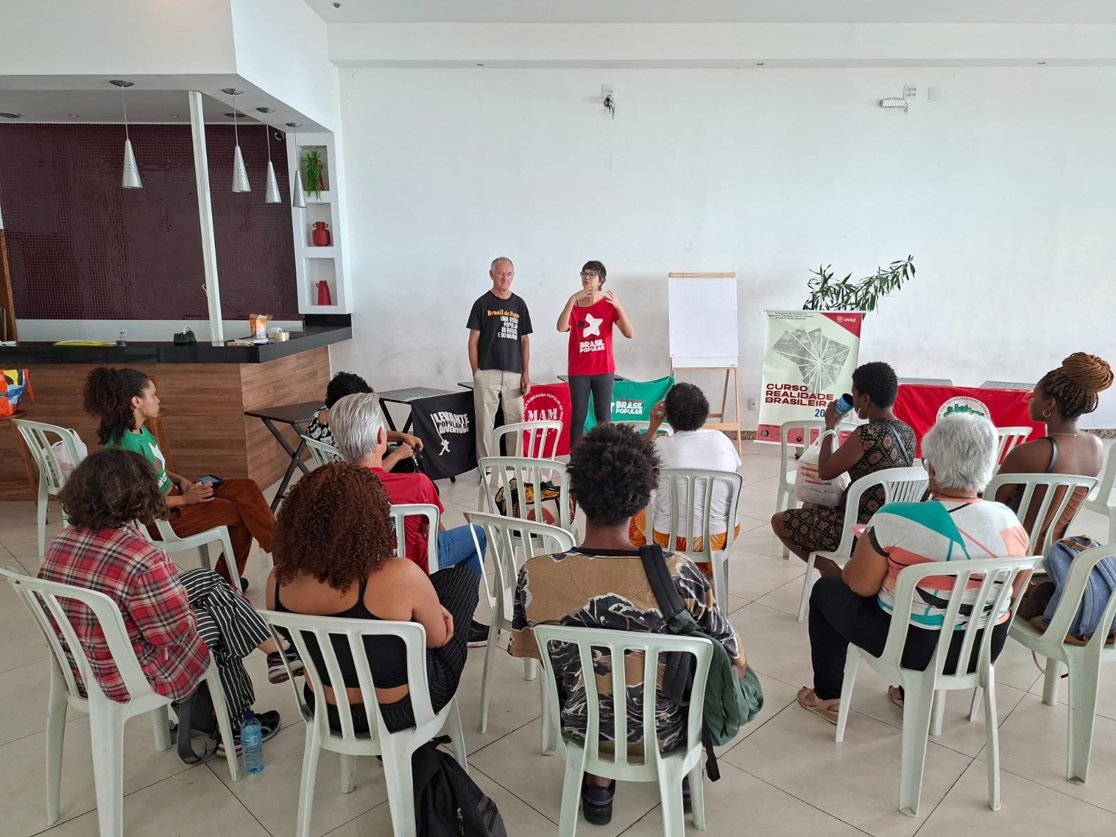 Na palestra de encerramento do Curso, realizada no Sindicato dos Bancários, a jornalista e integrante da Coordenação Nacional do Movimento Brasil Popular Ana Carolina Vasconcelos abordou os possíveis caminhos para uma “Revolução Brasileira”, através de um projeto verdadeiramente popular, “livre das amarras” do sistema. “Depois de citar fatores que podem contribuir para o ‘desconhecimento’ popular dos problemas, ela defendeu a necessidade de uma conscientização que leve a uma democracia real”, resumiu Claudio Dias – que, agora, com o diploma, integra o “Programa de Formação de Agentes de Cidadania, Cultura e Direitos” de Minas Gerais.
