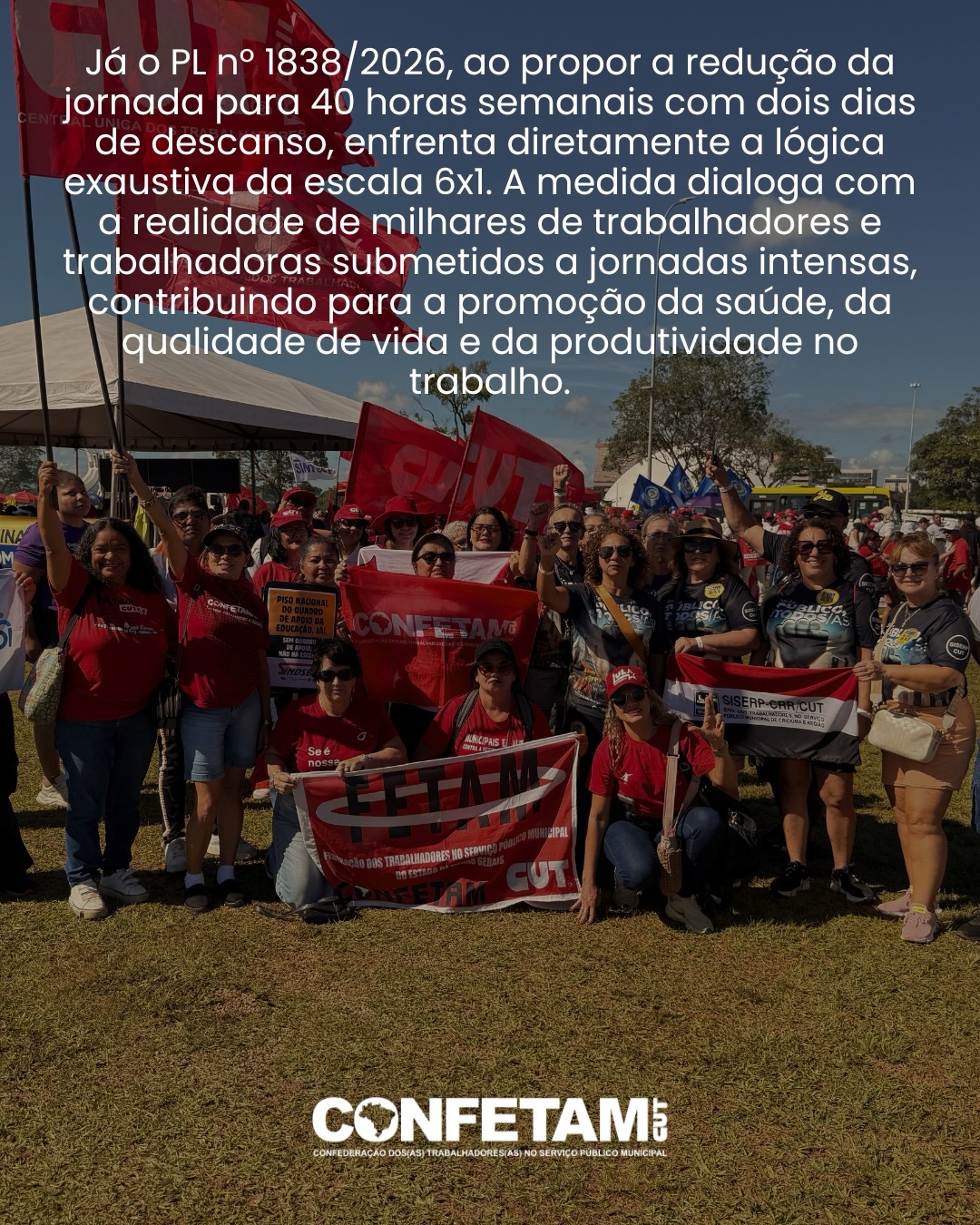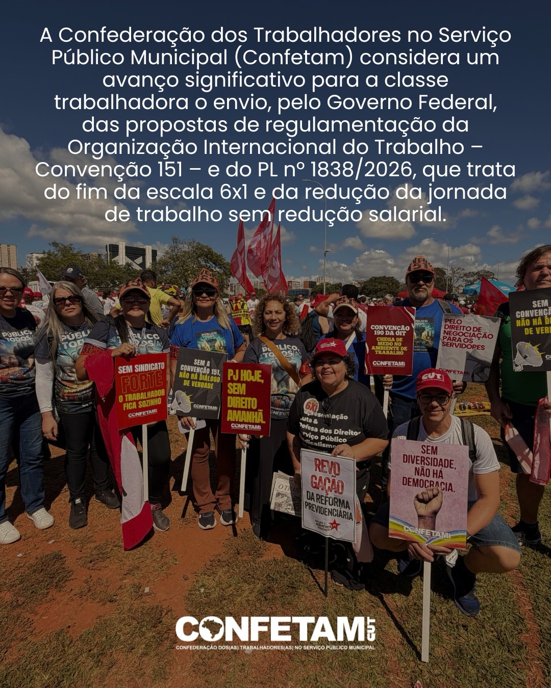 A CONFETAM (Confederação dos Trabalhadores no Serviço Público Municipal) – entidade da qual o SINSERPU-JF é filiado – saúda as vitórias recentes dos trabalhadores, mas reforça a importância da mobilização permanente das entidades sindicais, da pressão social e do acompanhamento rigoroso do processo legislativo